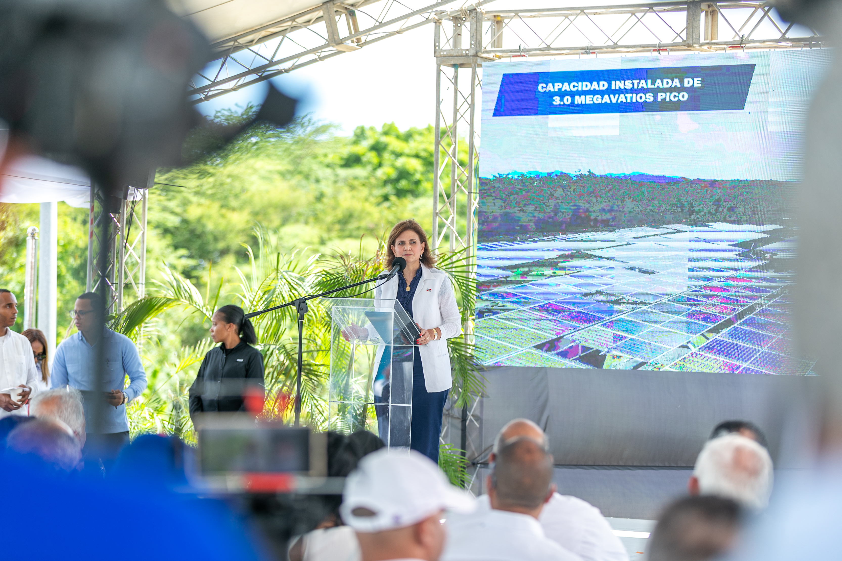 Con el fin de diversificar nuestra matriz energética y que nuestro país sea cada vez más sostenible y amigable con el medio ambiente, se dejó inaugurado el Parque Fotovoltaico «Brazo Derecho», en Jicomé, Valverde. Su puesta en funcionamiento marca un hito, pues es el primer proyecto hidroeléctrico-solar desarrollado en la República Dominicana. Santo Domingo, República Dominicana, 4 de Agosto 2024. Vp/ Pedro Rodriguez
