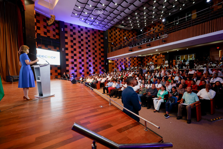 La vicepresidenta Raquel Peña encabezó la tercera entrega de certificados y presentación de logros del Instituto de Desarrollo y Crédito Corporativo. Esta entidad promueve el crecimiento y el fortalecimiento de las cooperativas, impulsando así el desarrollo socioeconómico de nuestro país. Santo Domingo, República Dominicana, 6 de Agosto 2024. Vp/ Felix Hirujo