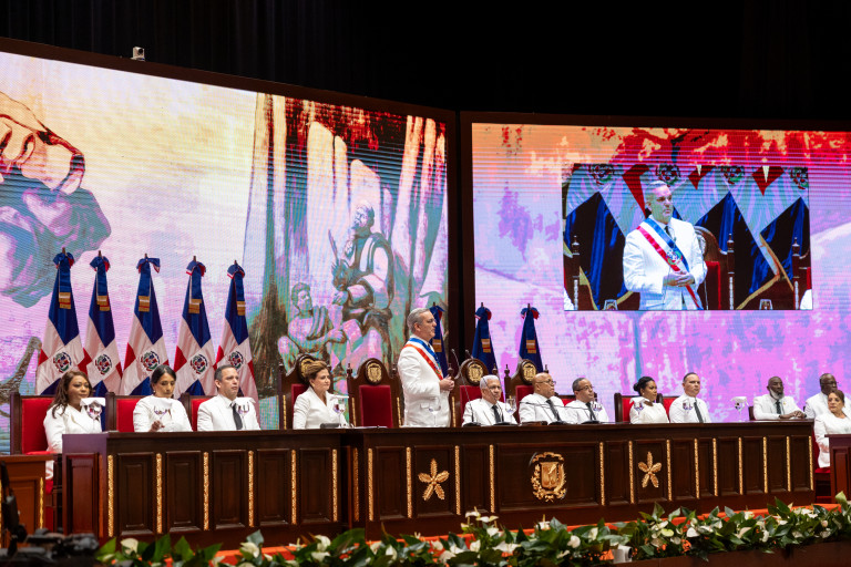 El presidente Luis Abinader y la vicepresidenta Raquel Peña fueron juramentados para el período constitucional 2024-2028. El mandatario expresó, durante su discurso ante la Asamblea Nacional, que no defraudará la confianza del pueblo dominicano, y trabajará incansablemente para que sigamos cosechando más desarrollo y transformando la República Dominicana. Santo Domingo, República Dominicana, 16 de Agosto 2024. Vp/ Pedro Rodriguez