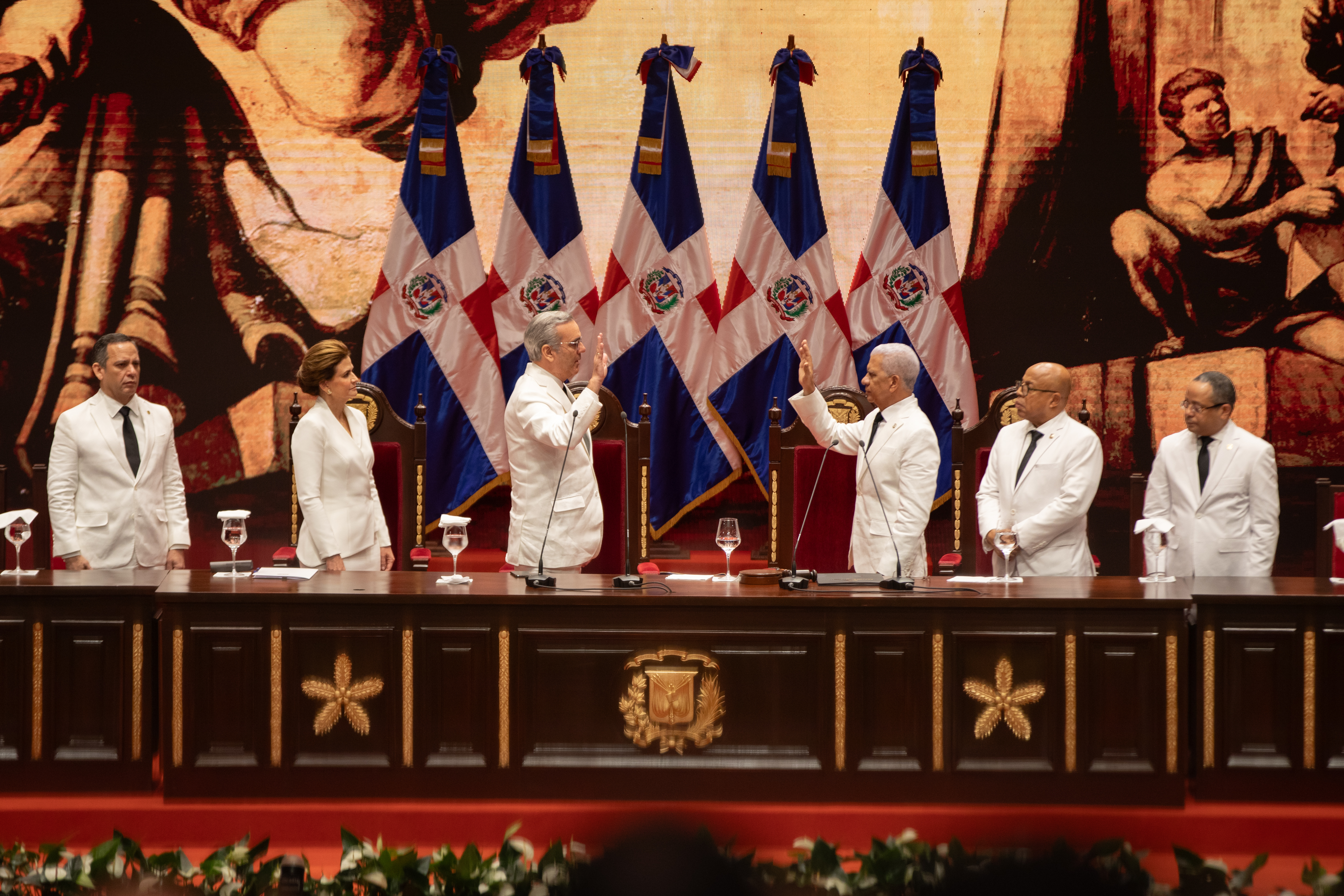 El presidente Luis Abinader y la vicepresidenta Raquel Peña fueron juramentados para el período constitucional 2024-2028. El mandatario expresó, durante su discurso ante la Asamblea Nacional, que no defraudará la confianza del pueblo dominicano, y trabajará incansablemente para que sigamos cosechando más desarrollo y transformando la República Dominicana. Santo Domingo, República Dominicana, 16 de Agosto 2024. Vp/ Felix Hirujo