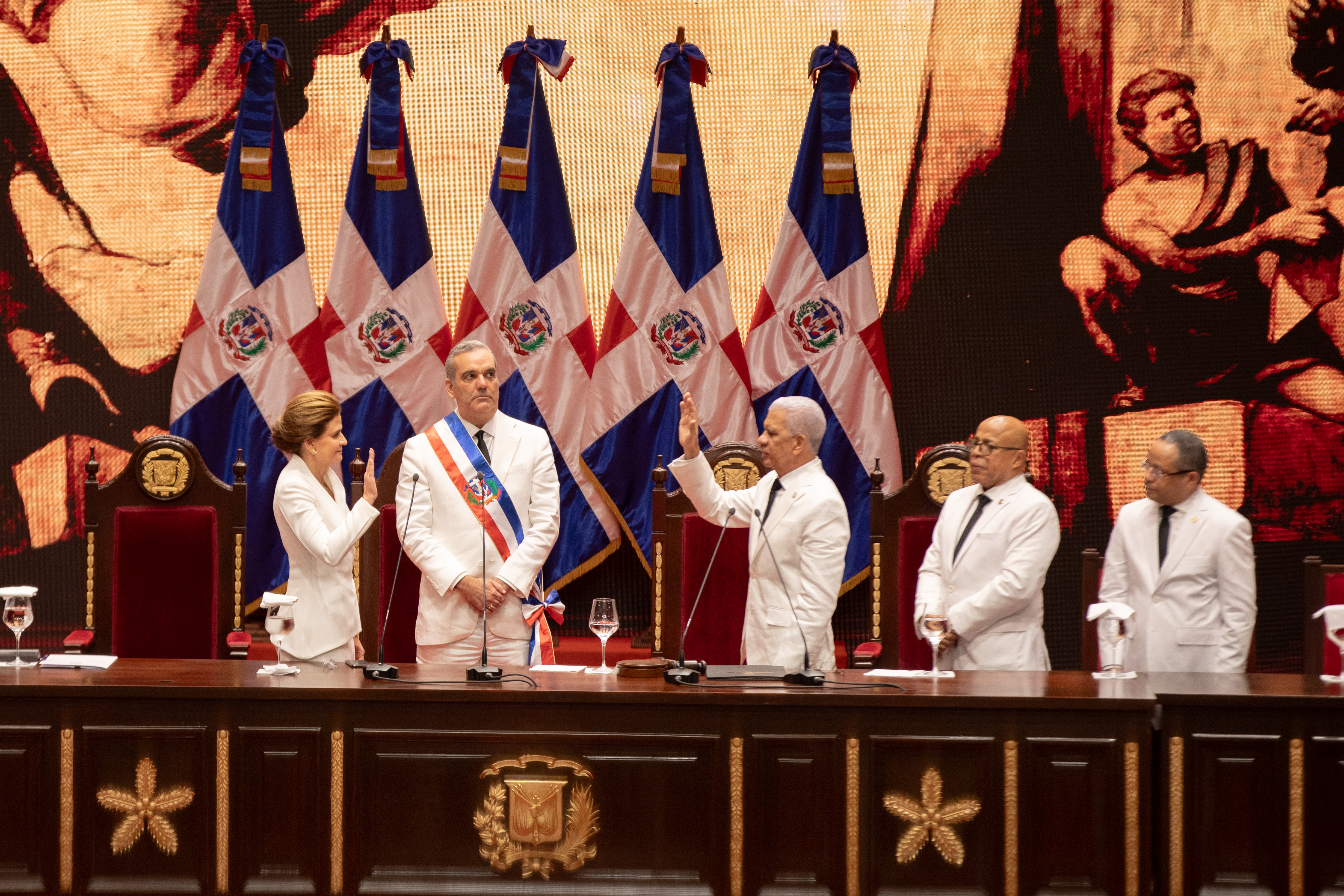 El presidente Luis Abinader y la vicepresidenta Raquel Peña fueron juramentados para el período constitucional 2024-2028. El mandatario expresó, durante su discurso ante la Asamblea Nacional, que no defraudará la confianza del pueblo dominicano, y trabajará incansablemente para que sigamos cosechando más desarrollo y transformando la República Dominicana. Santo Domingo, República Dominicana, 16 de Agosto 2024. Vp/ Felix Hirujo