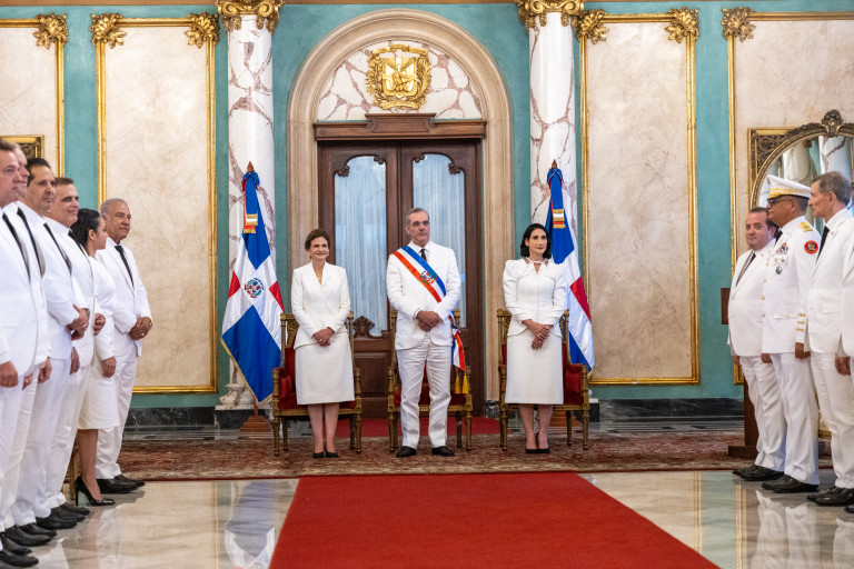 El presidente Luis Abinader, en compañía de la vicepresidenta Raquel Peña, juramentó a los nuevos miembros de su gabinete, quienes se comprometieron a servir al pueblo dominicano con transparencia, integridad y responsabilidad, velando siempre por el bien común. Santo Domingo, República Dominicana. 16 de Agosto del 2024. VP/ Pedro Rodriguez