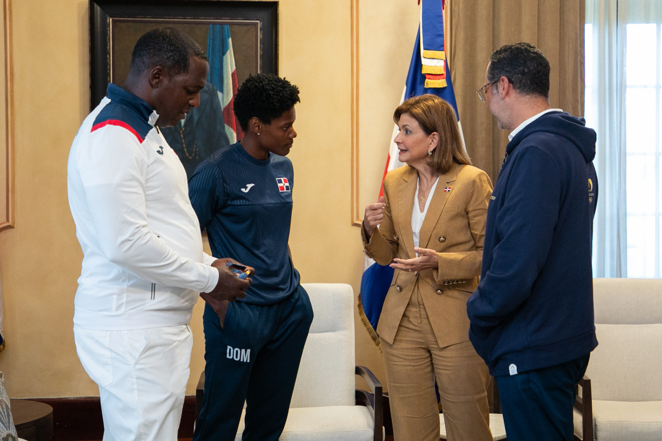Nuestros medallistas Marileidy Paulino, Cristian Pinales y Yunior Alcántara fueron recibidos por el presidente Luis Abinader, durante una recepción en el Palacio Nacional, donde también estuvo la vicepresidenta Raquel Peña. Los deportistas participaron en los pasados Juegos Olímpicos Paris 2024, llenándonos de orgullo a todos y todas. Santo Domingo, República Dominicana. 19 de Agosto del 2024. VP/ Amehd Gitte