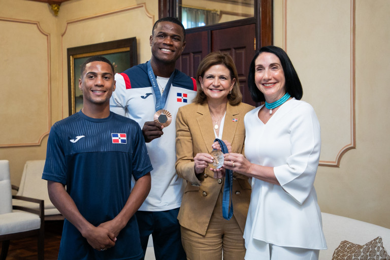 Nuestros medallistas Marileidy Paulino, Cristian Pinales y Yunior Alcántara fueron recibidos por el presidente Luis Abinader, durante una recepción en el Palacio Nacional, donde también estuvo la vicepresidenta Raquel Peña. Los deportistas participaron en los pasados Juegos Olímpicos Paris 2024, llenándonos de orgullo a todos y todas. Santo Domingo, República Dominicana. 19 de Agosto del 2024. VP/ Amehd Gitte