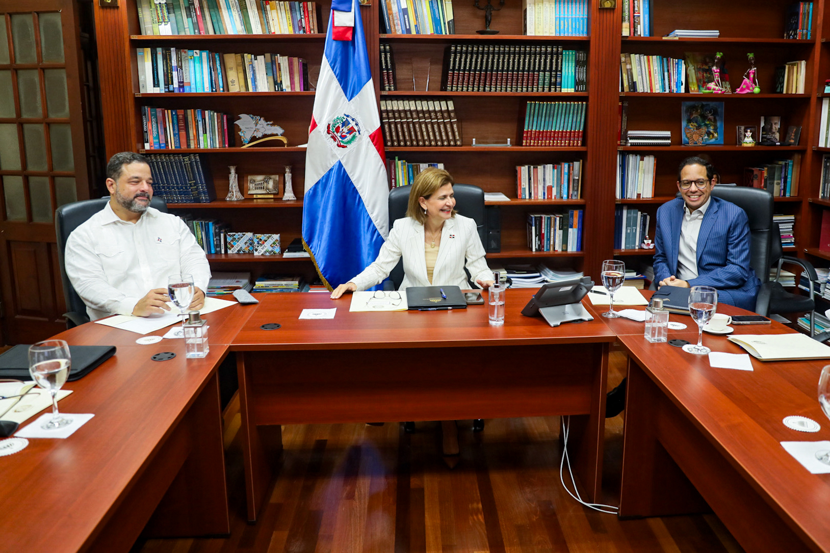 Con el objetivo de dar seguimiento a las acciones que se están ejecutando en los proyectos de Cabo Rojo, la vicepresidenta Raquel Peña se reunió con ministros y directores de distintas entidades. En el encuentro, participaron los señores Armando Paíno, Sigmund Freund, Agustín Morillo, Jean Luis Rodríguez, Alejandro Campos y Mauricio Hamui. Santo Domingo, República Dominicana. 22 de Agosto del 2024. VP/ Sintia Méndez