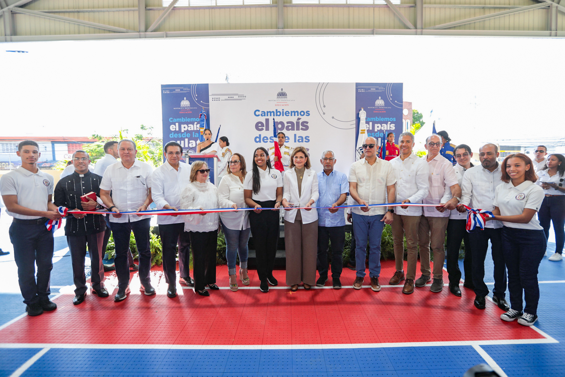 La vicepresidenta Raquel Peña, inauguró el techado de la cancha deportiva del Instituto Tecnológico México, un espacio que promoverá el crecimiento deportivo, cultural y recreativo de todos los estudiantes. Santiago, República Dominicana. 25 de Agosto del 2024. VP/ Sintia Méndez