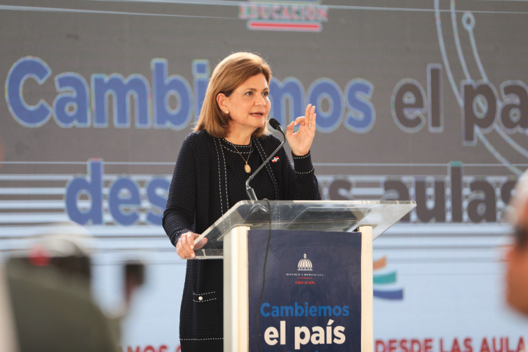 La vicepresidenta Raquel Peña, estuvo presente en el inicio del nuevo período escolar junto a los estudiantes y maestros del centro educativo Hermanos Díaz Moreno, en Santiago. Santiago, República Dominicana. 26 de Agosto del 2024. VP/ Sintia Méndez