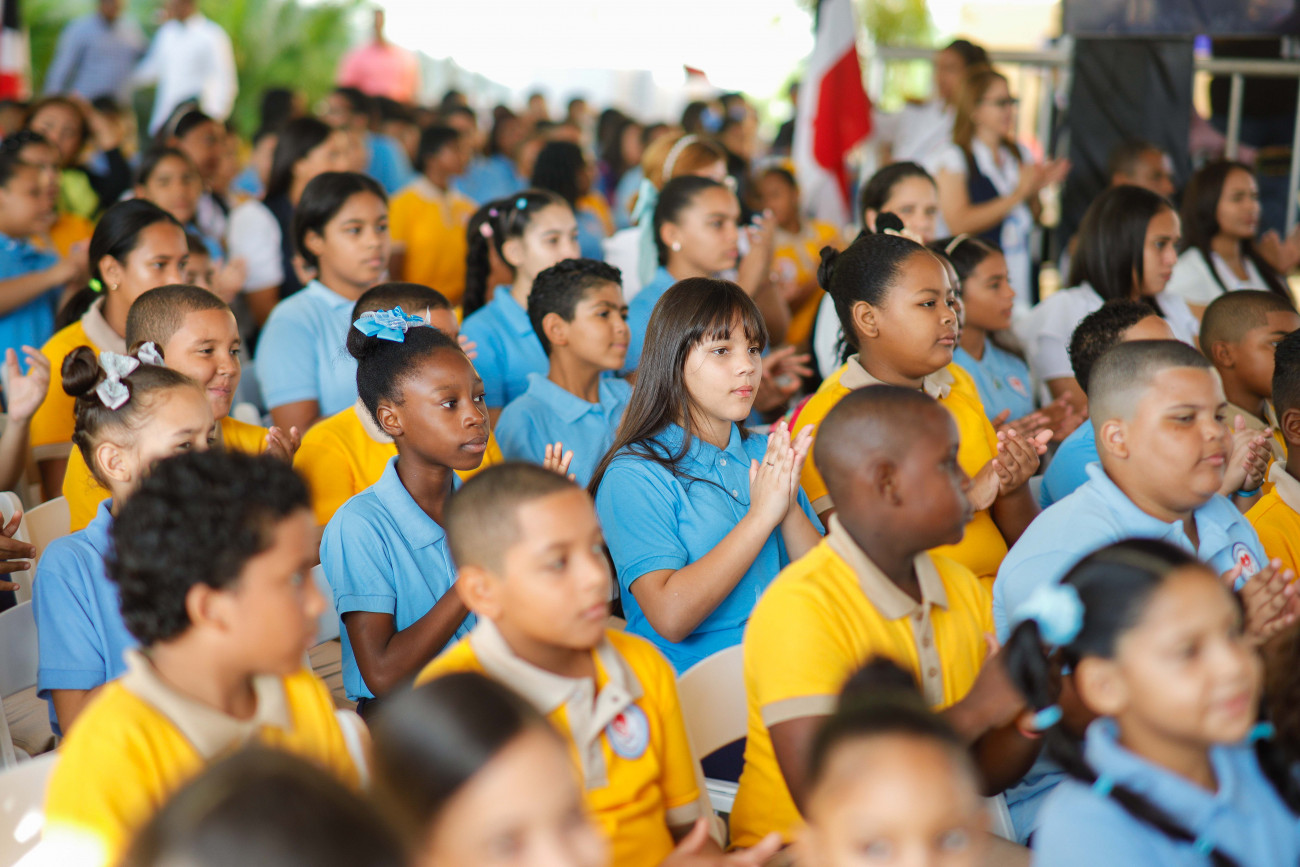 La vicepresidenta Raquel Peña, estuvo presente en el inicio del nuevo período escolar junto a los estudiantes y maestros del centro educativo Hermanos Díaz Moreno, en Santiago. Santiago, República Dominicana. 26 de Agosto del 2024. VP/ Amehd Gitte