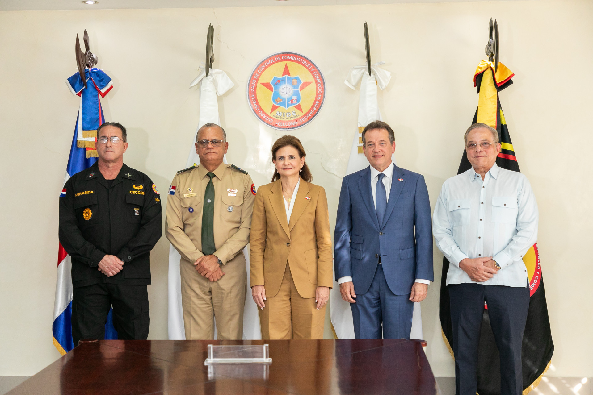 La vicepresidenta Raquel Peña, junto al Ministerio de Industria, Comercio y Mipymes, y otras entidades, hizo entrega de una flotilla de trece camionetas nuevas para el Centro Especializado de Control de Combustibles (CECCOM). Santo Domingo, República Dominicana, 27 de Agosto 2024. Vp/ Pedro Rodriguez
