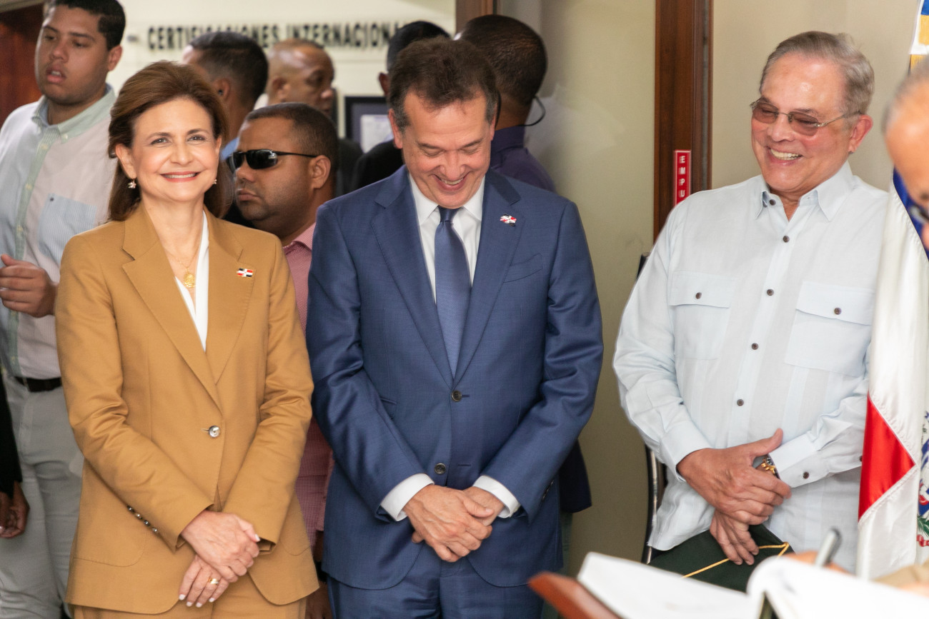 La vicepresidenta Raquel Peña, junto al Ministerio de Industria, Comercio y Mipymes, y otras entidades, hizo entrega de una flotilla de trece camionetas nuevas para el Centro Especializado de Control de Combustibles (CECCOM). Santo Domingo, República Dominicana, 27 de Agosto 2024. Vp/ Pedro Rodriguez