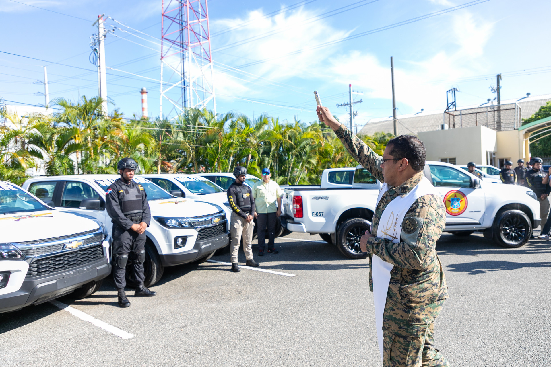 La vicepresidenta Raquel Peña, junto al Ministerio de Industria, Comercio y Mipymes, y otras entidades, hizo entrega de una flotilla de trece camionetas nuevas para el Centro Especializado de Control de Combustibles (CECCOM). Santo Domingo, República Dominicana, 27 de Agosto 2024. Vp/ Pedro Rodriguez