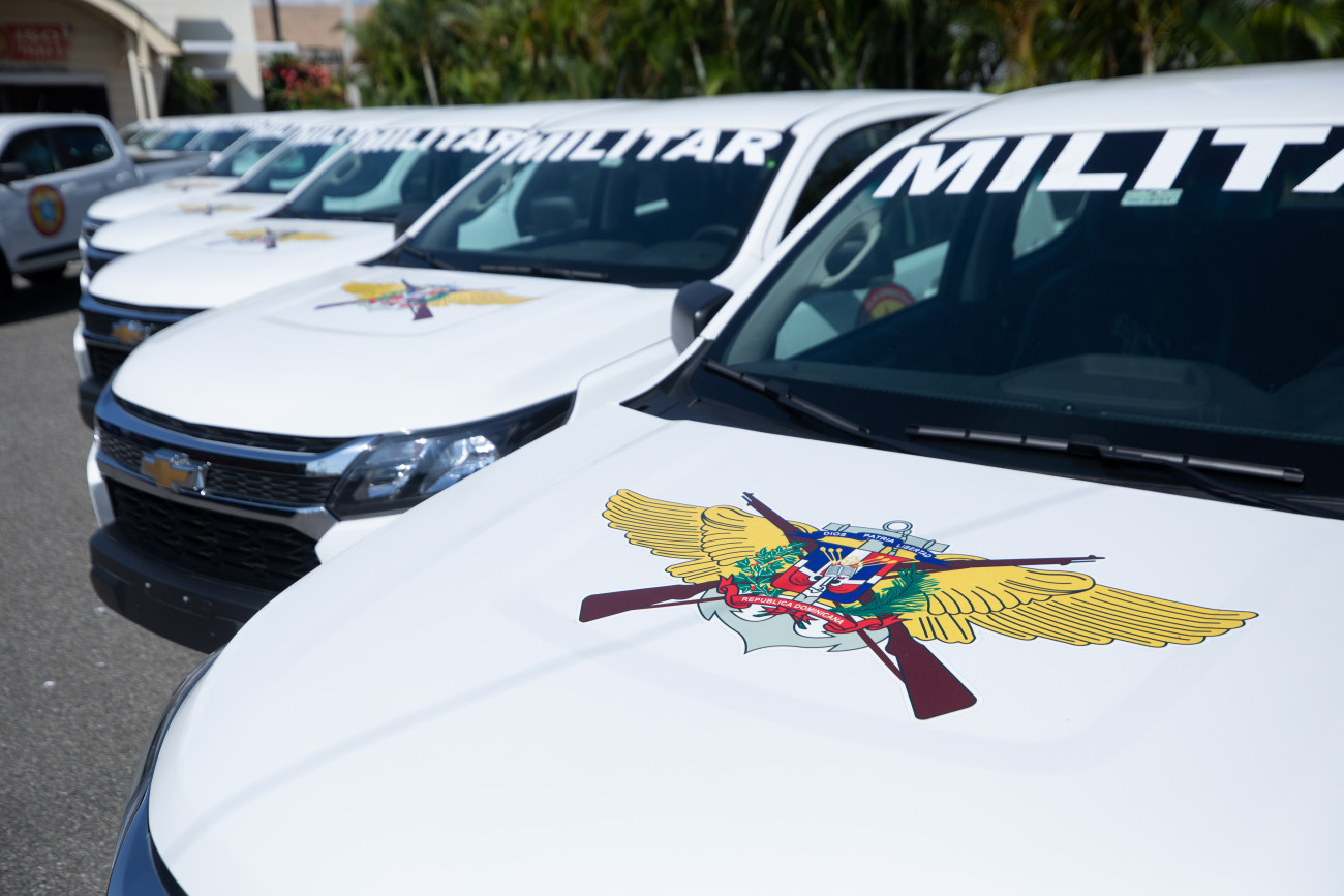 La vicepresidenta Raquel Peña, junto al Ministerio de Industria, Comercio y Mipymes, y otras entidades, hizo entrega de una flotilla de trece camionetas nuevas para el Centro Especializado de Control de Combustibles (CECCOM). Santo Domingo, República Dominicana, 27 de Agosto 2024. Vp/ Felix Hirujo