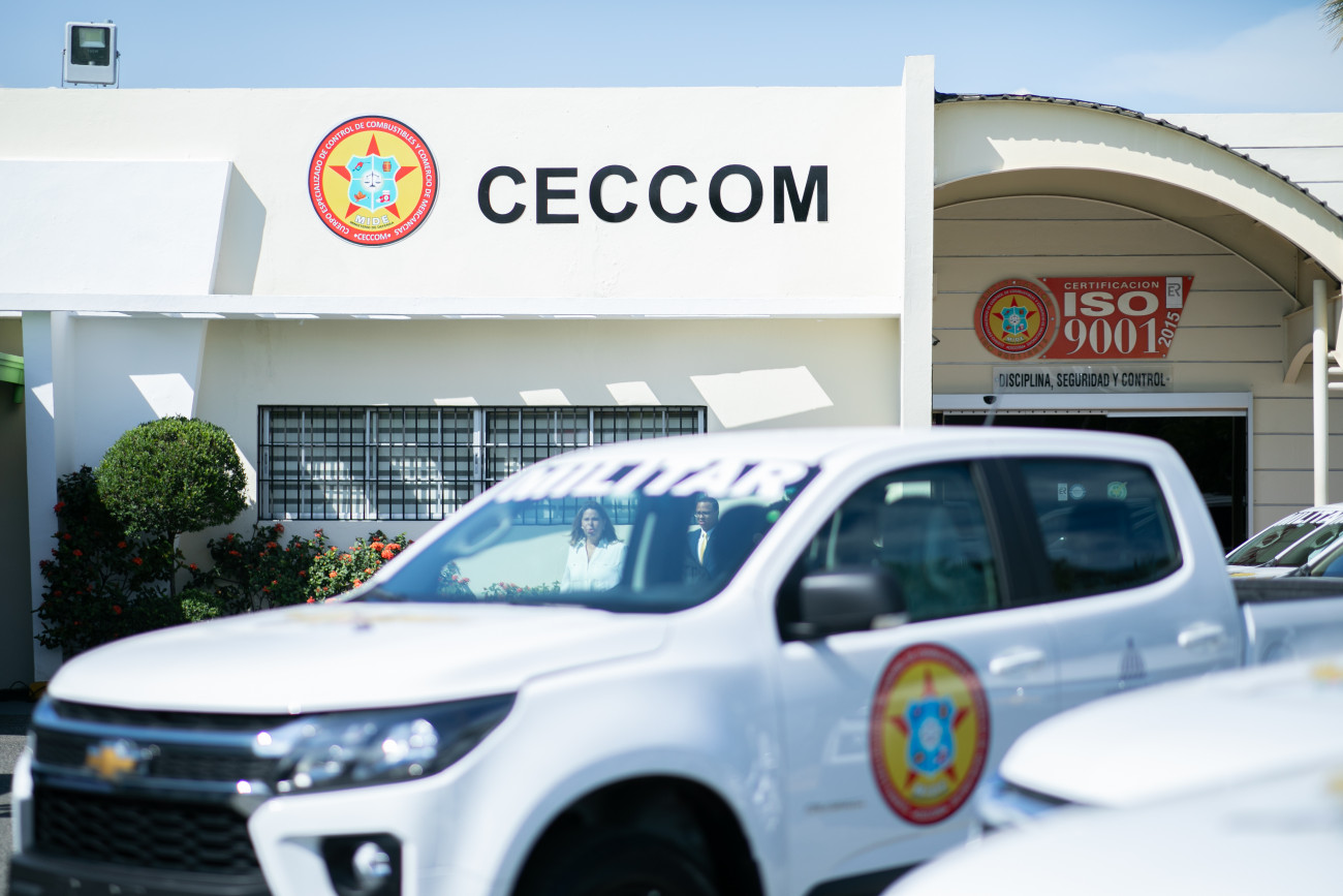 La vicepresidenta Raquel Peña, junto al Ministerio de Industria, Comercio y Mipymes, y otras entidades, hizo entrega de una flotilla de trece camionetas nuevas para el Centro Especializado de Control de Combustibles (CECCOM). Santo Domingo, República Dominicana, 27 de Agosto 2024. Vp/ Felix Hirujo