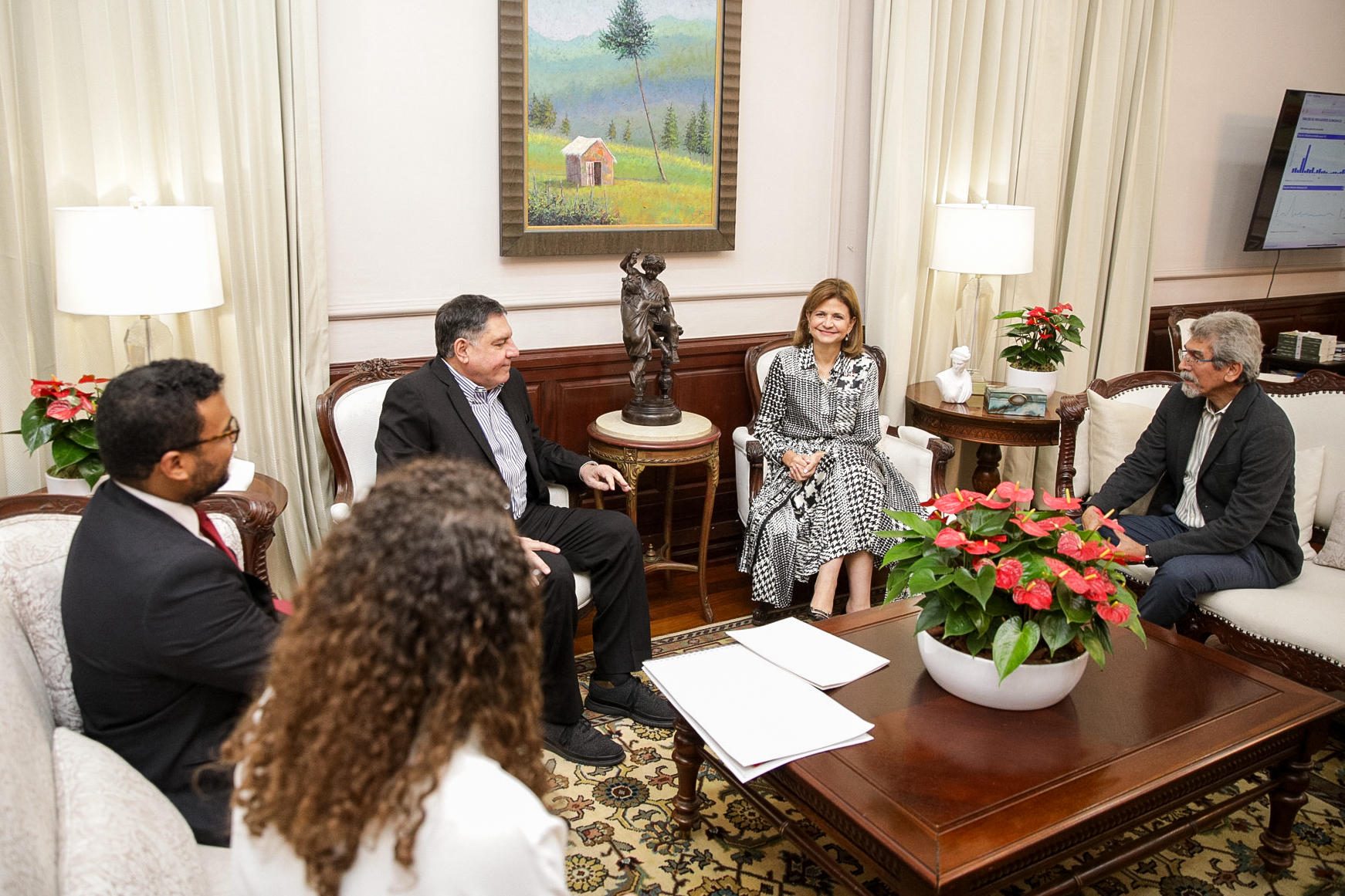 Con el objetivo de conocer las diferentes acciones relacionadas con la restauración y conservación del Palacio Nacional, la vicepresidenta Raquel Peña sostuvo un encuentro con el viceministro de Patrimonio Cultural, Sr. Gamal Michelen, y la comisión que se encarga de gestionar este proyecto. Santo Domingo, República Dominicana, 29 de Agosto 2024. Vp/ Sintia Méndez