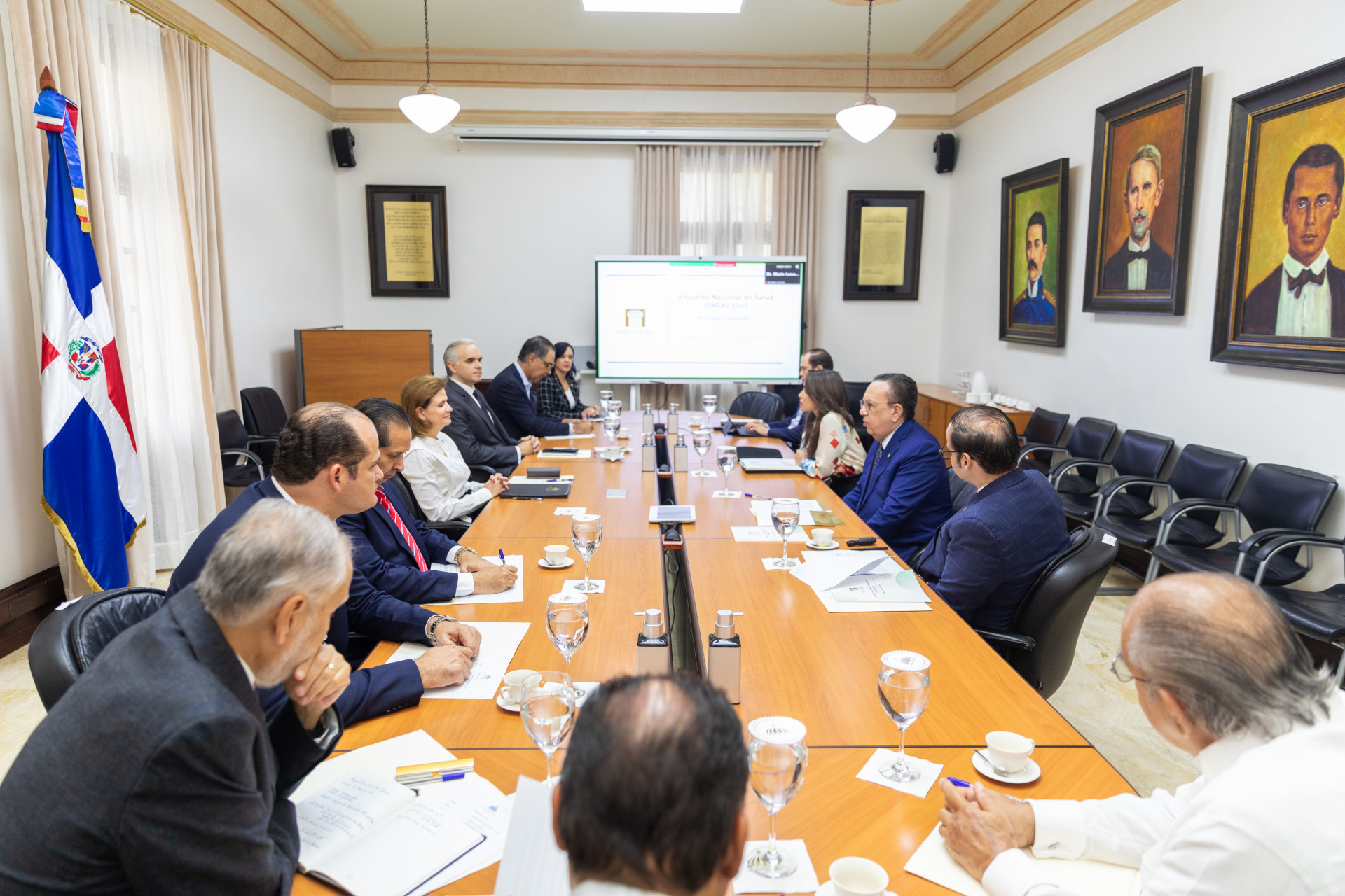 La vicepresidenta Raquel Peña encabezó una reunión con miembros del Gabinete de Salud y el gobernador del Banco Central, el señor Héctor Valdez Albizu, quien asistió junto a los funcionarios Elina Rosario y Ramón González. En este encuentro, se discutieron iniciativas para continuar mejorando el sistema sanitario en beneficio de la población. Santo Domingo, República Dominicana, 5 de Septiembre 2024. Vp/ Pedro Rodriguez