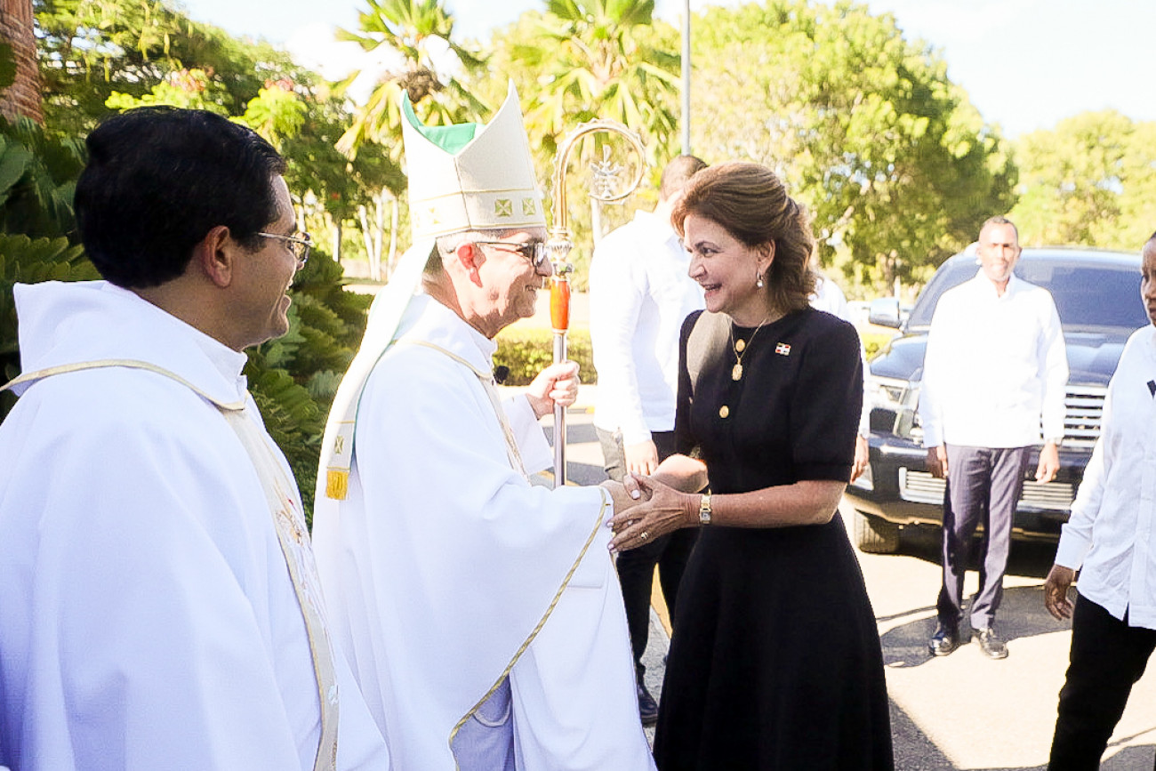 Con motivo del 62.º aniversario de la PUCMM, la vicepresidenta Raquel Peña participó en una eucaristía de acción de gracias, en la que se destacó la labor de esta institución académica en el fomento de una educación superior íntegra y de calidad para las presentes y futuras generaciones. Santiago, República Dominicana. 09 de Septiembre del 2024. VP/ Félix Hirujo