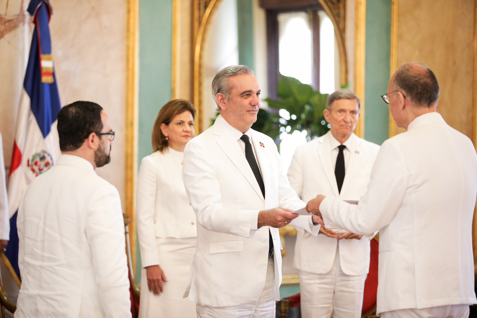 El presidente Luis Abinader, junto a la vicepresidenta Raquel Peña y el ministro del MIREX, el señor Roberto Álvarez, encabezó el acto de presentación de cartas credenciales de nuevos representantes diplomáticos de Perú, Francia, Nicaragua, Dinamarca, Filipinas, Australia y Finlandia que, a partir de hoy, estarán acreditados en el país. Santo Domingo, República Dominicana. 11 de Septiembre del 2024. Sintia Méndez