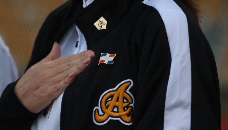 La señora Vicepresidenta Raquel Peña participa realizando el lanzamiento de la primera bola en el juego de Beisbol entre Aguilas y Gigantes en Santiago Republica Dominicana. 15 de Noviembre 2020 VP/Ricardo Rojas