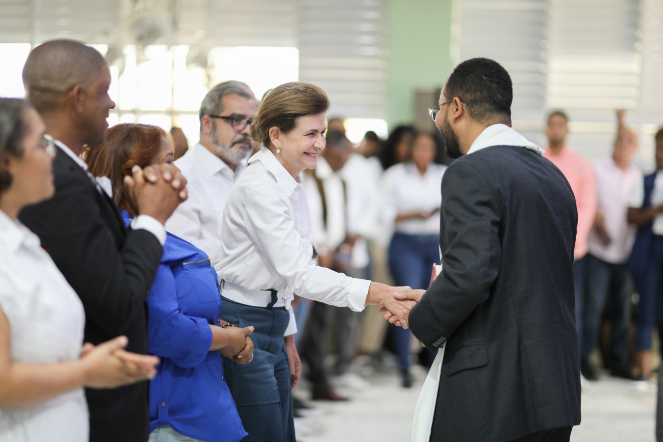 La vicepresidenta Raquel Peña dejó inaugurado el centro educativo Desiderio Morillo Méndez, una obra que abrirá nuevas oportunidades para estudiantes y docentes. El centro cuenta con laboratorio de ciencias, salón de cómputo, biblioteca, enfermería, cancha, áreas de recreación y diversos espacios que garanticen la formación integral de la comunidad. San Juan, República Dominicana. 06 de Octubre del 2024. VP/ Félix Hirujo