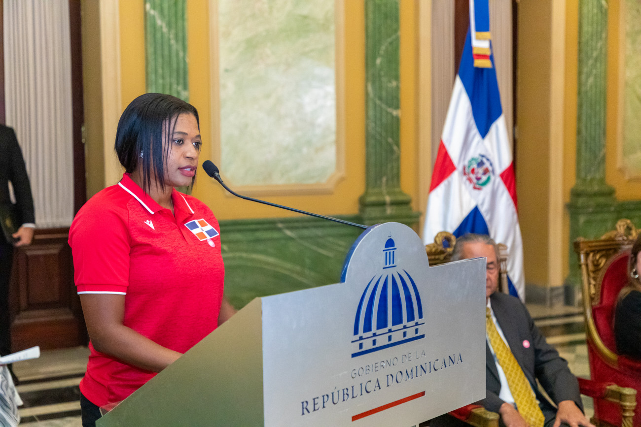 La vicepresidenta Raquel Peña encabezó el acto de entrega de la bandera dominicana a nuestra selección nacional, que será la anfitriona de este torneo de la FIFA Women's World Cup, a celebrarse en Santo Domingo y Santiago del próximo 16 de octubre al 3 de noviembre. Santo Domingo, República Dominicana, 09 de Octubre 2024. Vp/ Pedro Rodriguez
