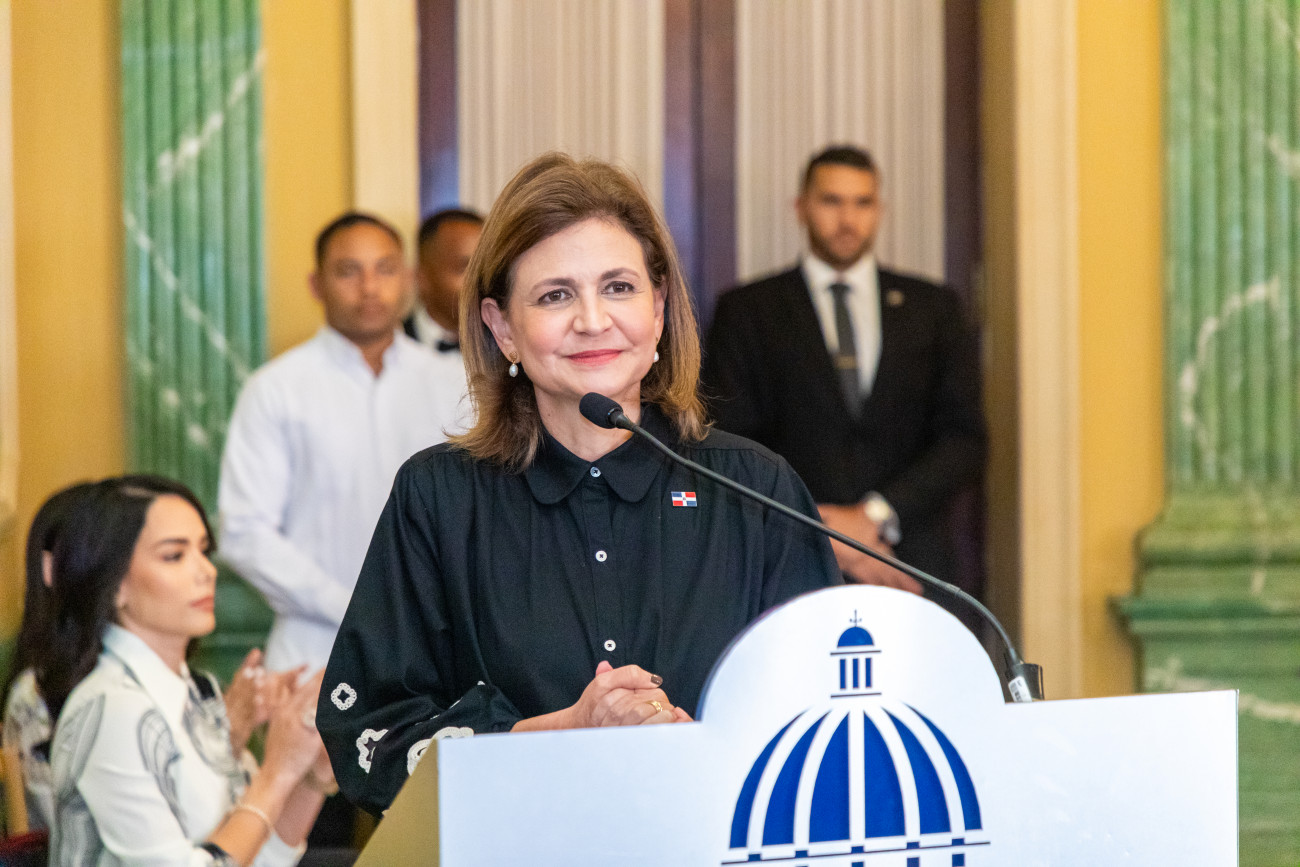 La vicepresidenta Raquel Peña encabezó el acto de entrega de la bandera dominicana a nuestra selección nacional, que será la anfitriona de este torneo de la FIFA Women's World Cup, a celebrarse en Santo Domingo y Santiago del próximo 16 de octubre al 3 de noviembre. Santo Domingo, República Dominicana, 09 de Octubre 2024. Vp/ Pedro Rodriguez