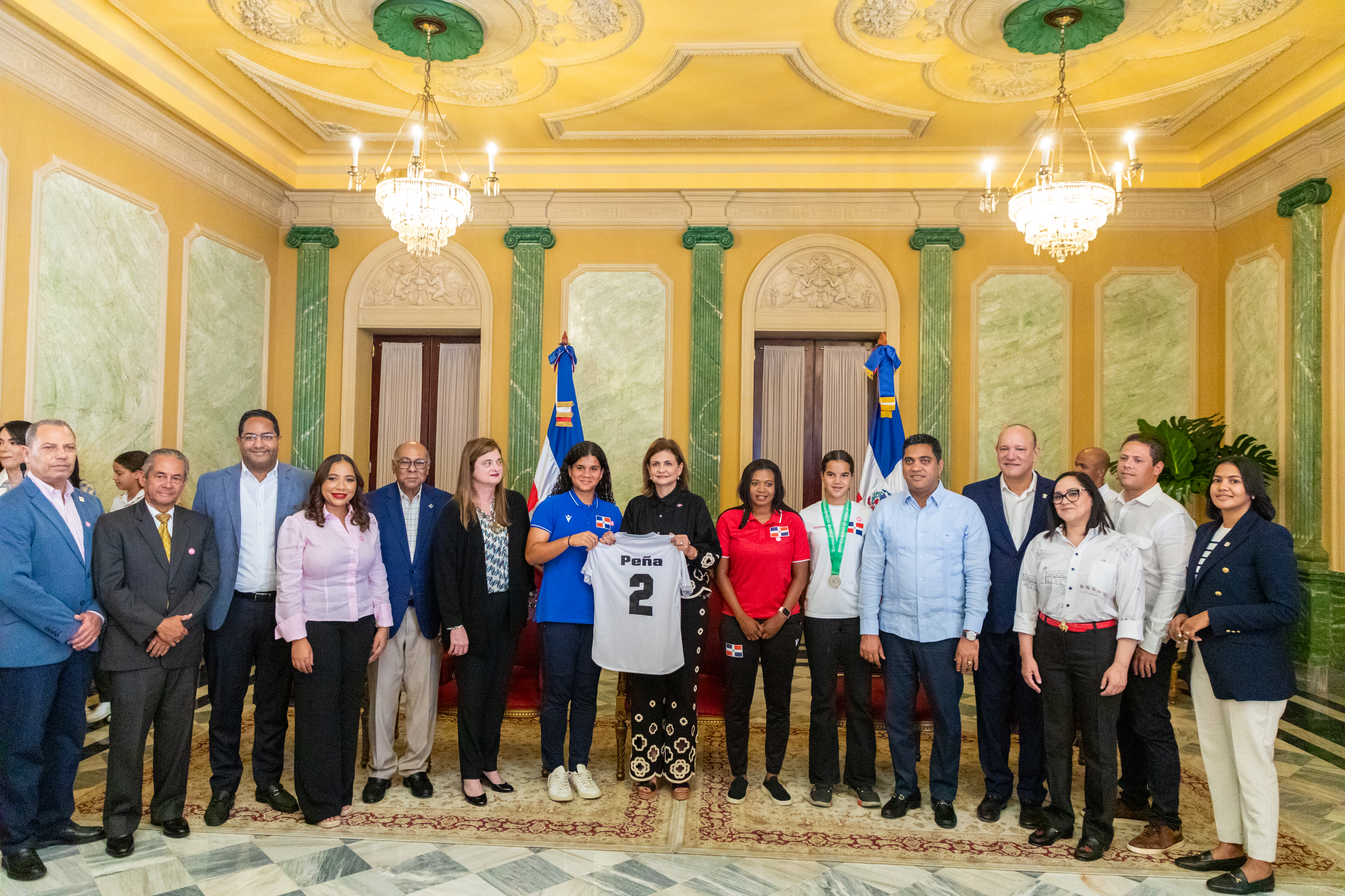 La vicepresidenta Raquel Peña encabezó el acto de entrega de la bandera dominicana a nuestra selección nacional, que será la anfitriona de este torneo de la FIFA Women's World Cup, a celebrarse en Santo Domingo y Santiago del próximo 16 de octubre al 3 de noviembre. Santo Domingo, República Dominicana, 09 de Octubre 2024. Vp/ Pedro Rodriguez