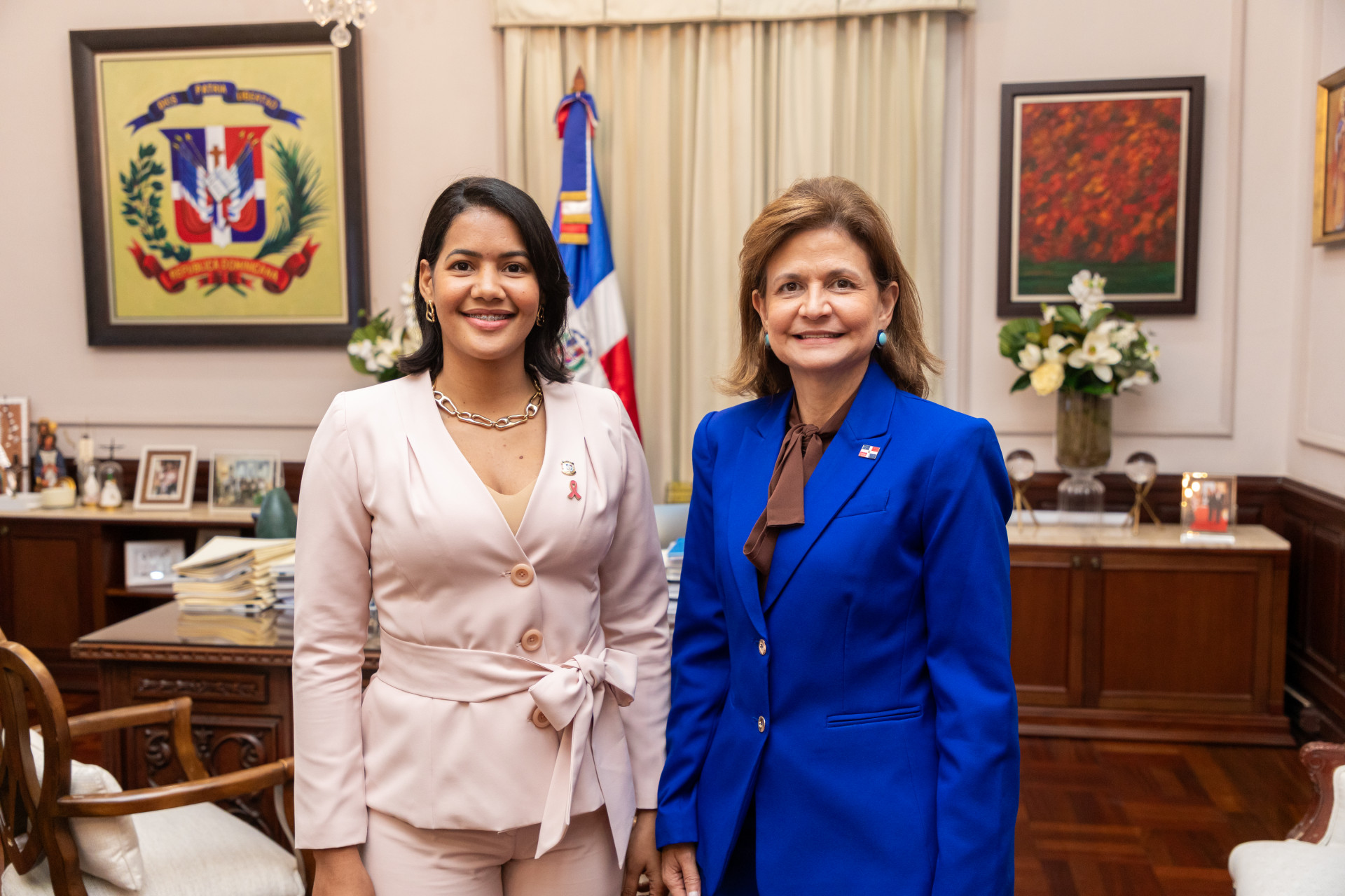 La vicepresidenta Raquel Peña recibió la visita de cortesía de la diputada por Bahoruco, la señora Olfanny Méndez. En su reunión conversaron diversos temas relacionados con el avance de esta provincia. Santo Domingo, República Dominicana, 16 de Octubre 2024. Vp/ Pedro Rodriguez