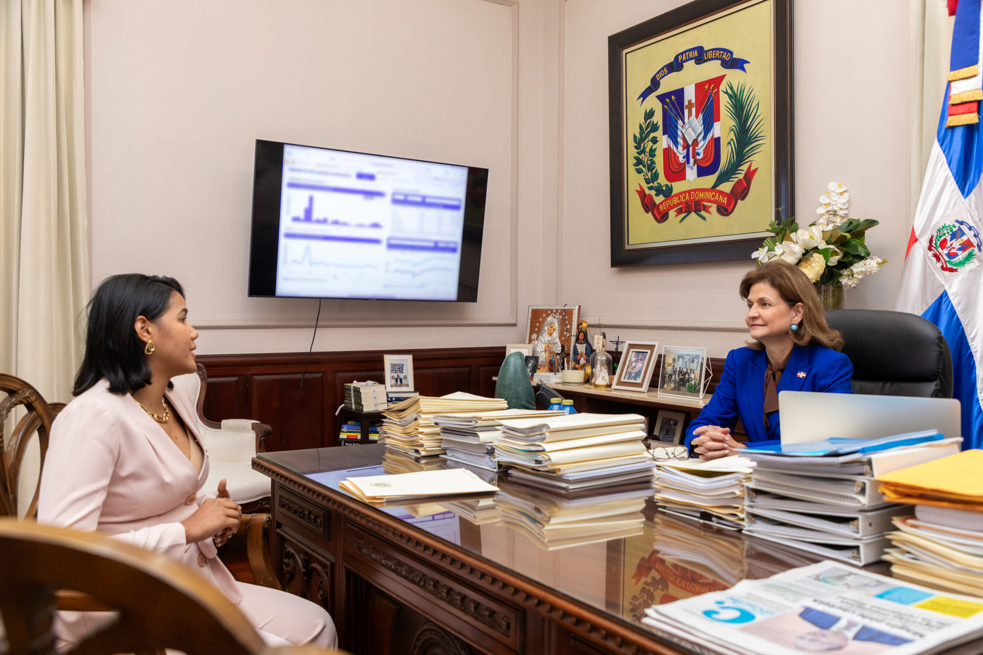 La vicepresidenta Raquel Peña recibió la visita de cortesía de la diputada por Bahoruco, la señora Olfanny Méndez. En su reunión conversaron diversos temas relacionados con el avance de esta provincia. Santo Domingo, República Dominicana, 16 de Octubre 2024. Vp/ Pedro Rodriguez
