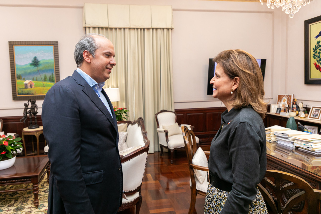 La vicepresidenta Raquel Peña recibió la visita de cortesía del embajador José Blanco, representante permanente de la República Dominicana ante las Naciones Unidas. Santo Domingo, República Dominicana. 24 de Octubre del 2024. VP/ Pedro Rodriguez