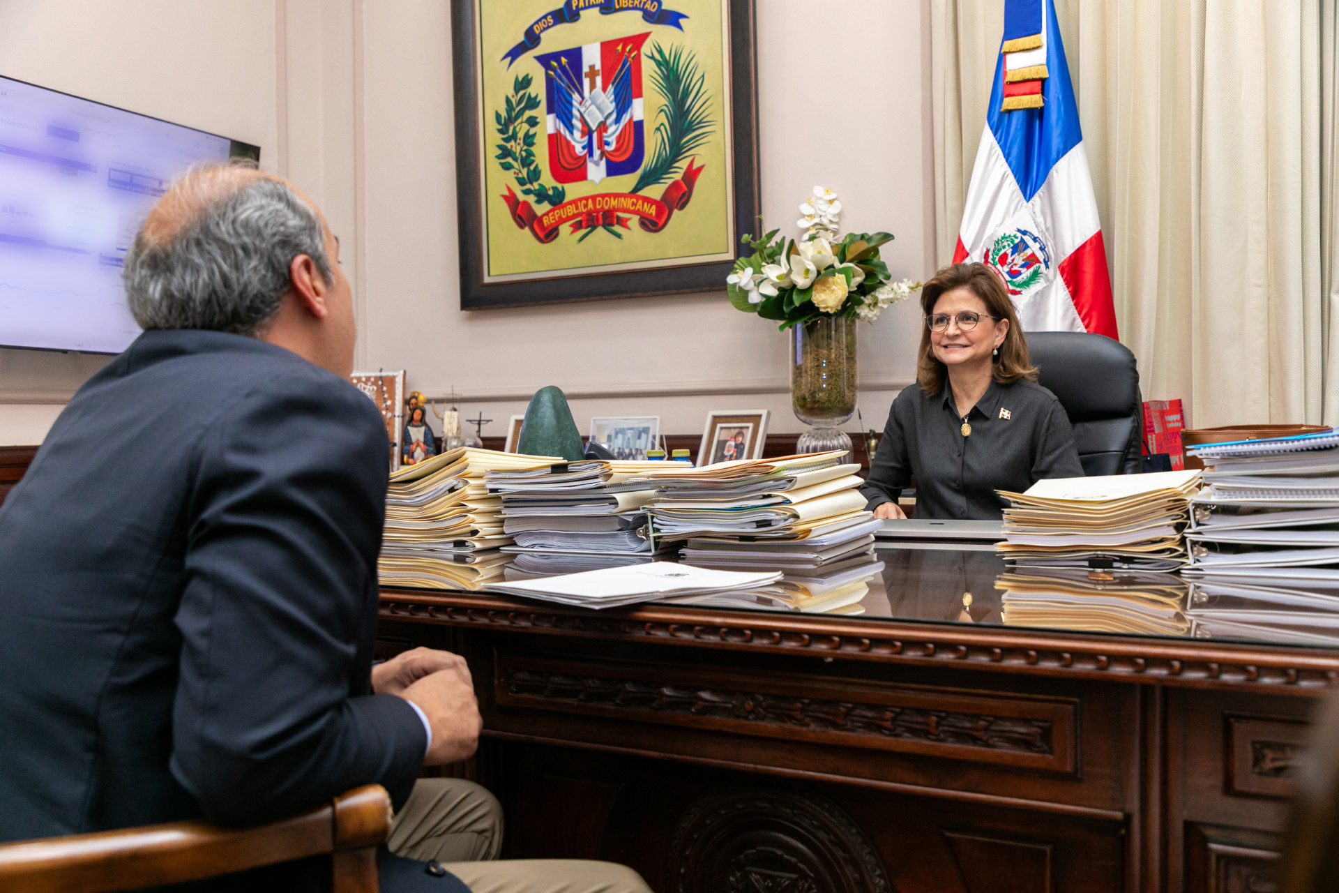 La vicepresidenta Raquel Peña recibió la visita de cortesía del embajador José Blanco, representante permanente de la República Dominicana ante las Naciones Unidas. Santo Domingo, República Dominicana. 24 de Octubre del 2024. VP/ Pedro Rodriguez