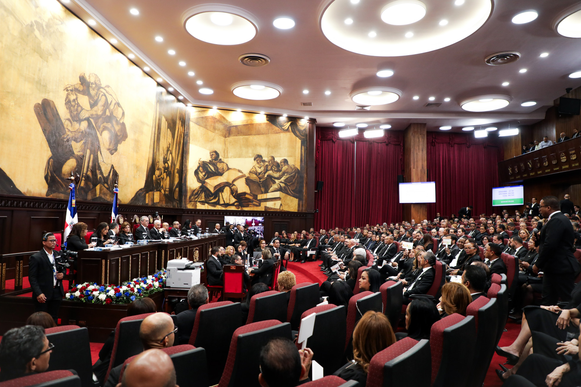 El presidente Luis Abinader, junto a la vicepresidenta Raquel Peña, encabezó hoy la ceremonia de promulgación de la nueva Constitución, aprobada por la Asamblea Nacional Revisora. Este acto simboliza la voluntad de seguir construyendo una nación mejor y un futuro más justo para todos los dominicanos y dominicanas. . Santo Domingo, República Dominicana. 27 de Octubre del 2024. VP/ Sintia Méndez