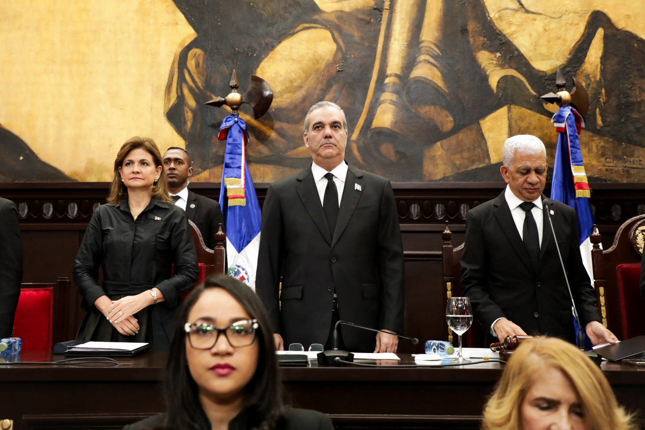 El presidente Luis Abinader, junto a la vicepresidenta Raquel Peña, encabezó hoy la ceremonia de promulgación de la nueva Constitución, aprobada por la Asamblea Nacional Revisora. Este acto simboliza la voluntad de seguir construyendo una nación mejor y un futuro más justo para todos los dominicanos y dominicanas. . Santo Domingo, República Dominicana. 27 de Octubre del 2024. VP/ Sintia Méndez