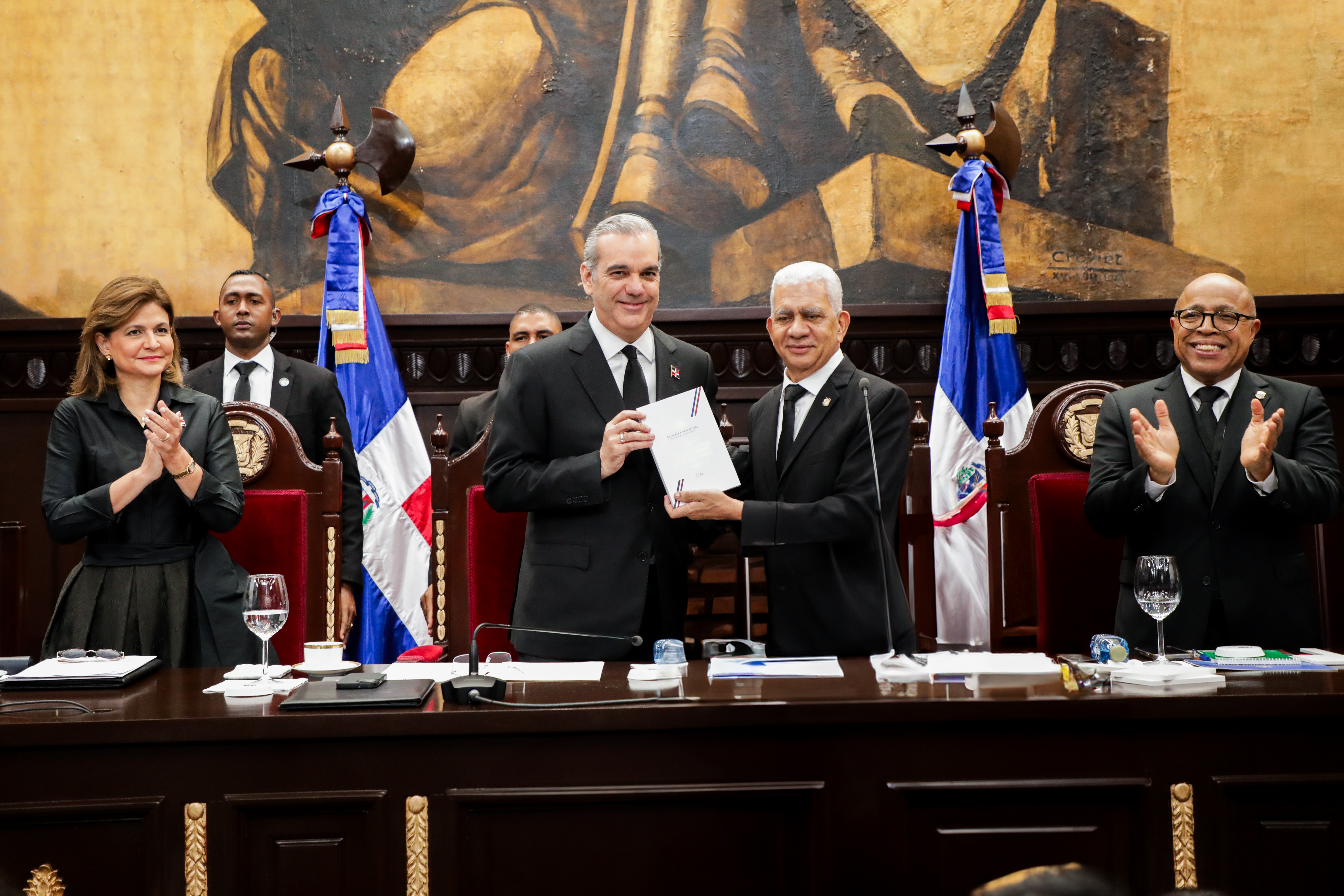El presidente Luis Abinader, junto a la vicepresidenta Raquel Peña, encabezó hoy la ceremonia de promulgación de la nueva Constitución, aprobada por la Asamblea Nacional Revisora. Este acto simboliza la voluntad de seguir construyendo una nación mejor y un futuro más justo para todos los dominicanos y dominicanas. . Santo Domingo, República Dominicana. 27 de Octubre del 2024. VP/ Sintia Méndez