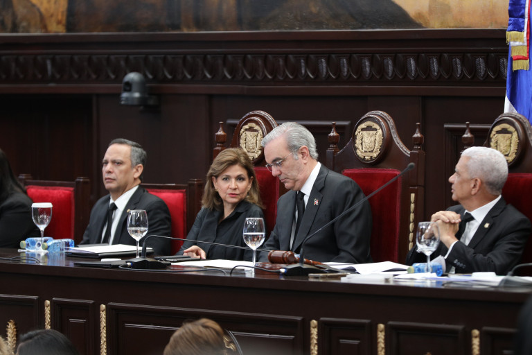El presidente Luis Abinader, junto a la vicepresidenta Raquel Peña, encabezó hoy la ceremonia de promulgación de la nueva Constitución, aprobada por la Asamblea Nacional Revisora. Este acto simboliza la voluntad de seguir construyendo una nación mejor y un futuro más justo para todos los dominicanos y dominicanas. . Santo Domingo, República Dominicana. 27 de Octubre del 2024. VP/ Félix Hirujo