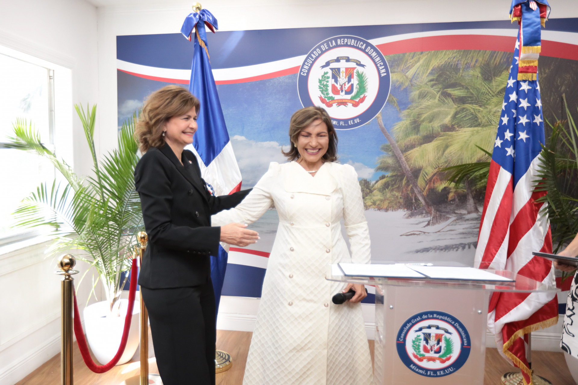 Durante su visita a Miami, la vicepresidenta Raquel Peña asistió a la puesta en circulación de la memoria institucional del consulado dominicano en esta ciudad y a la develación de una galería de excónsules. También, aprovechó la oportunidad para sostener un productivo encuentro con la cónsul Geanilda Vásquez. Florida, Estados Unidos. 30 de Octubre del 2024. VP/ Amehd Gitte