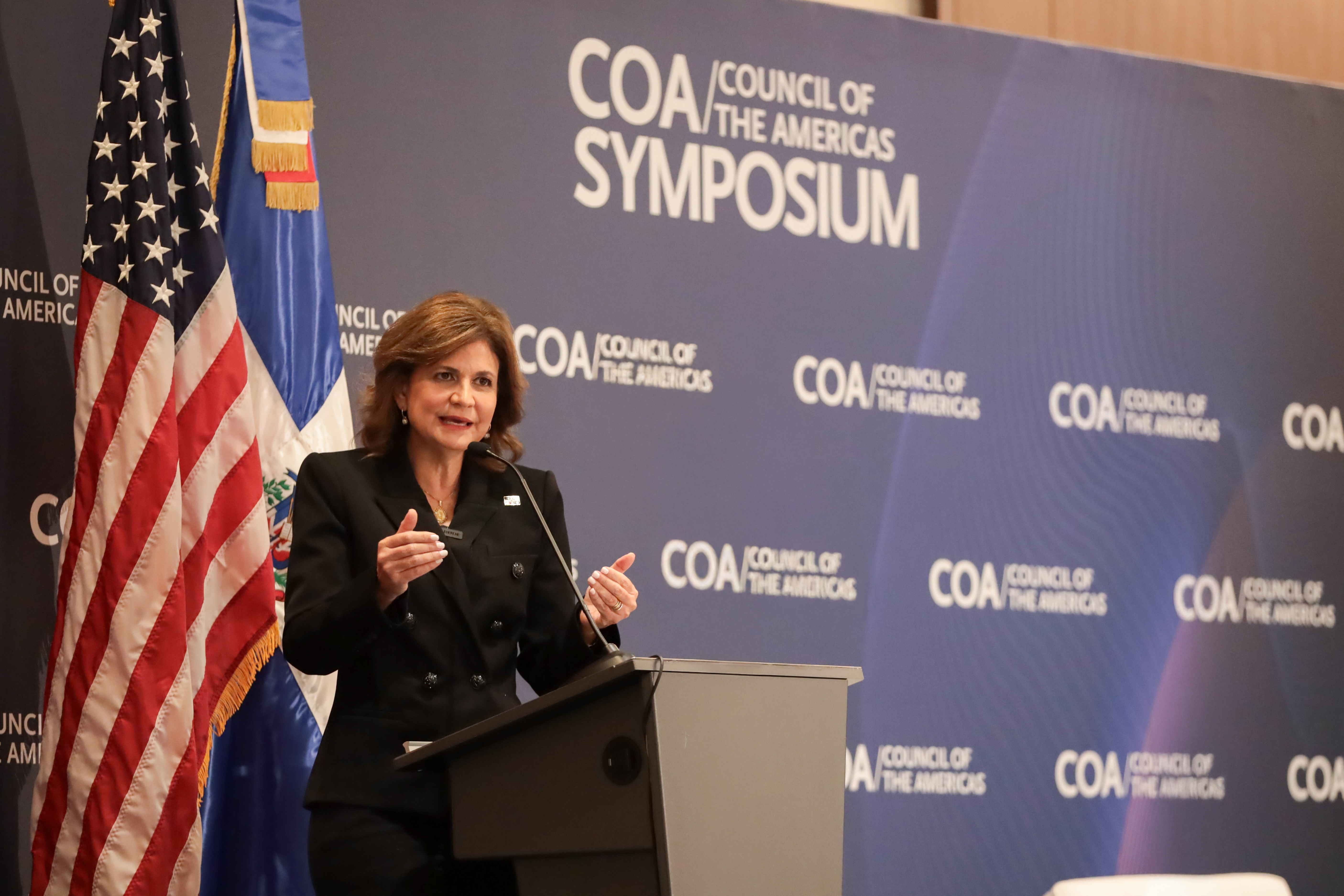 En el Council of the Americas Symposium 2024, la vicepresidenta Raquel Peña dictó la conferencia magistral «Un país en transformación: el liderazgo de República Dominicana en inversiones sostenibles», en la que expuso cómo nuestro país tiene un papel clave en el desarrollo económico de la región y es un aliado idóneo para la inversión extranjera. Florida, Estados Unidos. 30 de Octubre del 2024. VP/ Amehd Gitte