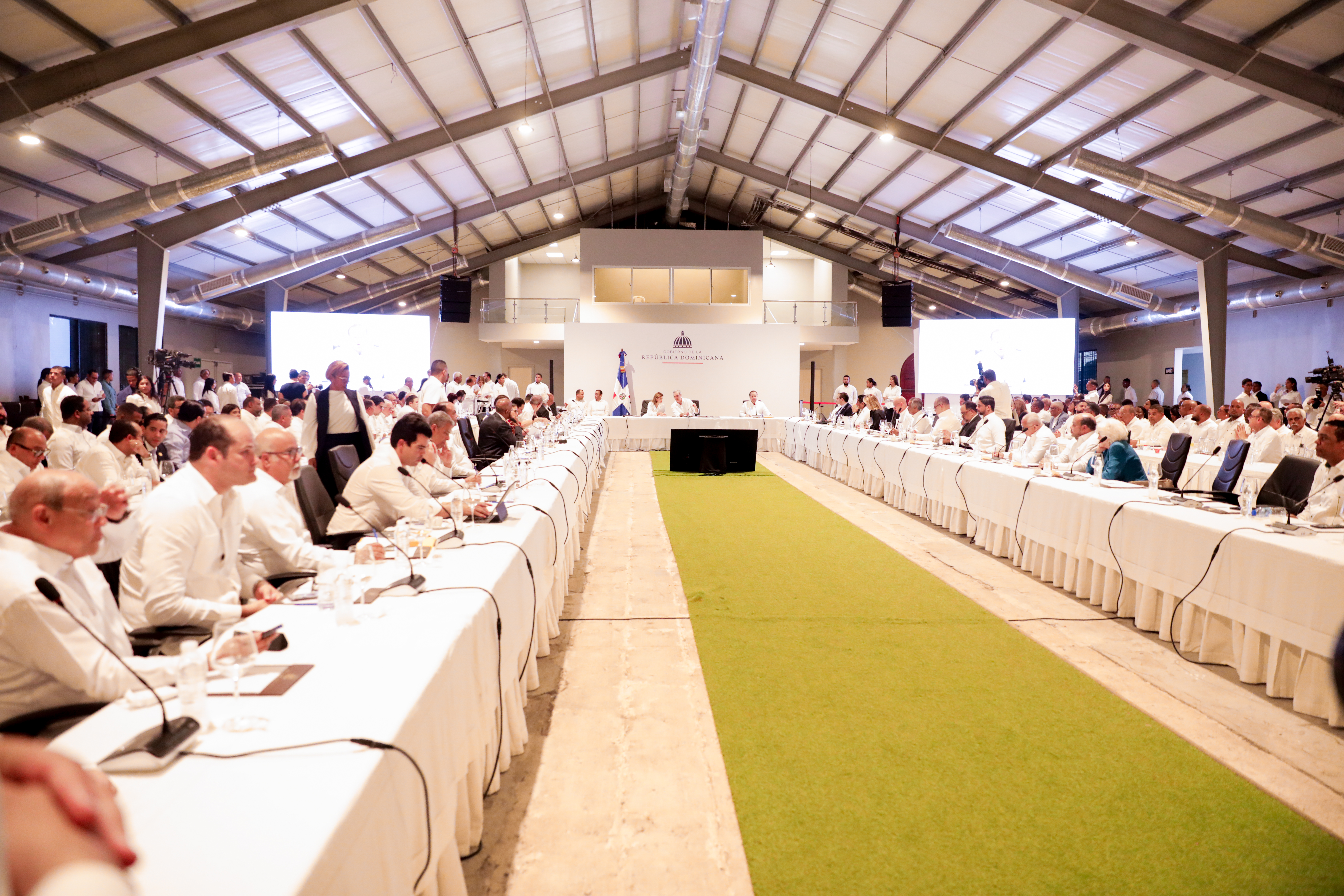 El presidente Luis Abinader, en compañía de la vicepresidenta Raquel Peña, encabezó un Consejo de Ministros y Directores. En esta reunión, se discutieron avances y logros de obras ejecutadas durante el período 2020-2024 en diversas áreas de desarrollo, como obras públicas, salud y alcantarillado. San Cristóbal, República Dominicana. 06 de Noviembre del 2024. VP/ Sintia Méndez