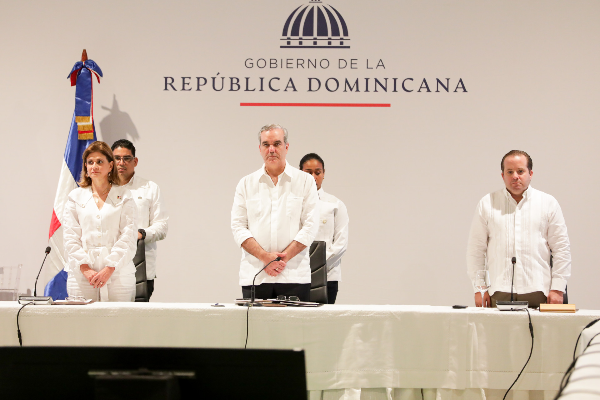 El presidente Luis Abinader, en compañía de la vicepresidenta Raquel Peña, encabezó un Consejo de Ministros y Directores. En esta reunión, se discutieron avances y logros de obras ejecutadas durante el período 2020-2024 en diversas áreas de desarrollo, como obras públicas, salud y alcantarillado. San Cristóbal, República Dominicana. 06 de Noviembre del 2024. VP/ Sintia Méndez