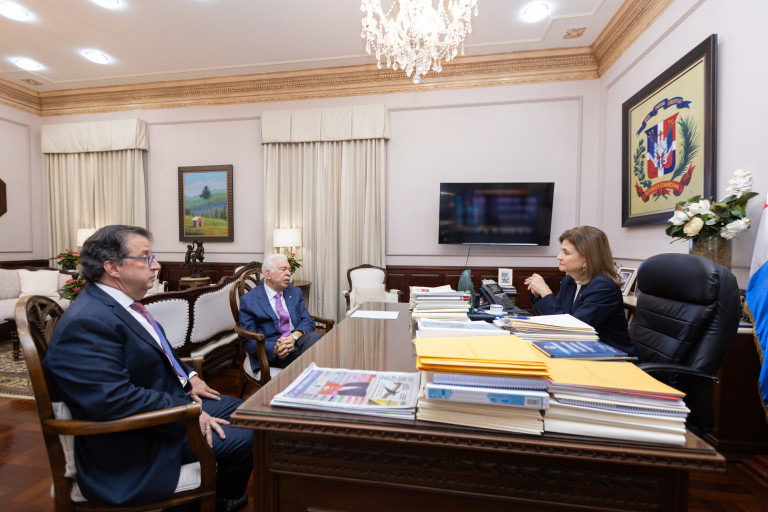 La vicepresidenta Raquel Peña se reunió con el señor Luis Molina Achécar, presidente del Centro Financiero BHD, y el señor Ricardo Fondeur, miembro del Consejo de Administración de esta entidad. Durante la reunión, dialogaron sobre temas vinculados a la estabilidad macroeconómica del país. Santo Domingo, República Dominicana, 12 de Noviembre 2024. Vp/ Amehd Gitte