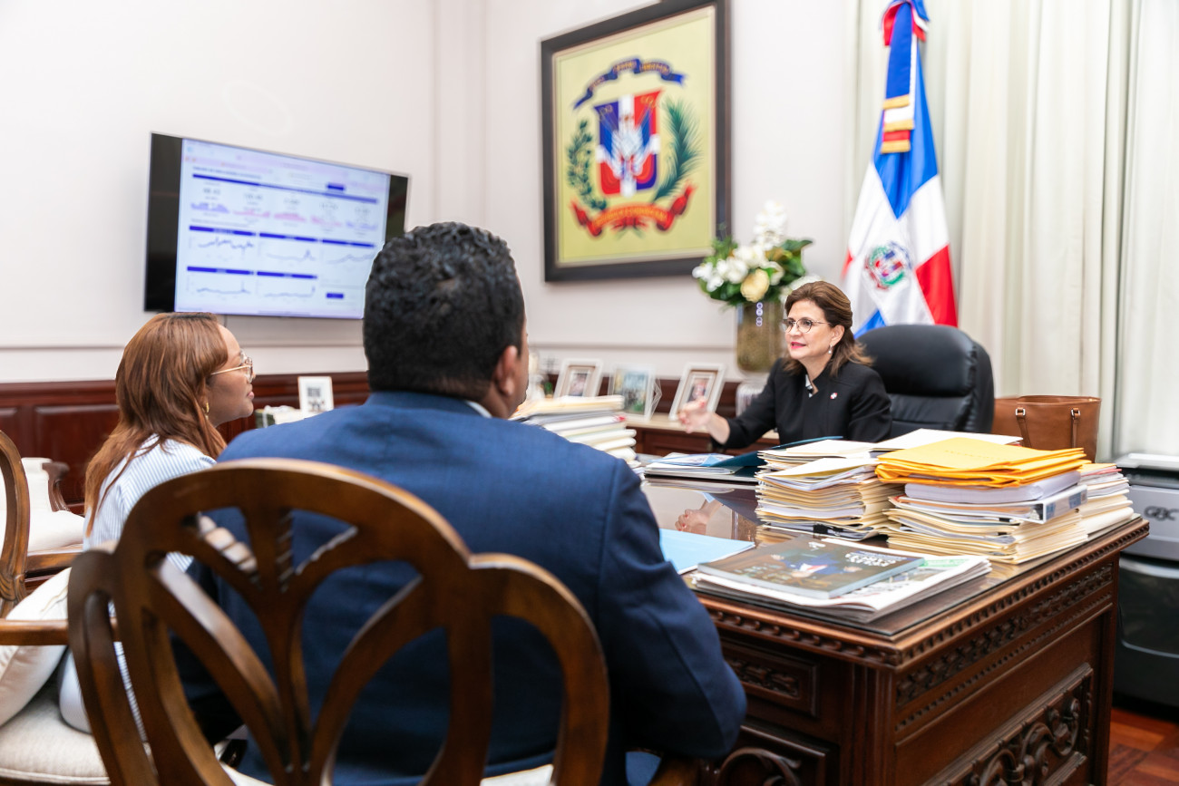 La vicepresidenta Raquel Peña sostuvo una reunión con el alcalde de Paraíso, el señor Francisco Acosta, y la señora Juanca Aracelis Alcántara, presidenta de la Fundación Cresur. Durante el encuentro, abordaron temas de interés para la región Enriquillo. Santo Domingo, República Dominicana, 21 de Noviembre 2024. Vp/ Pedro Rodriguez