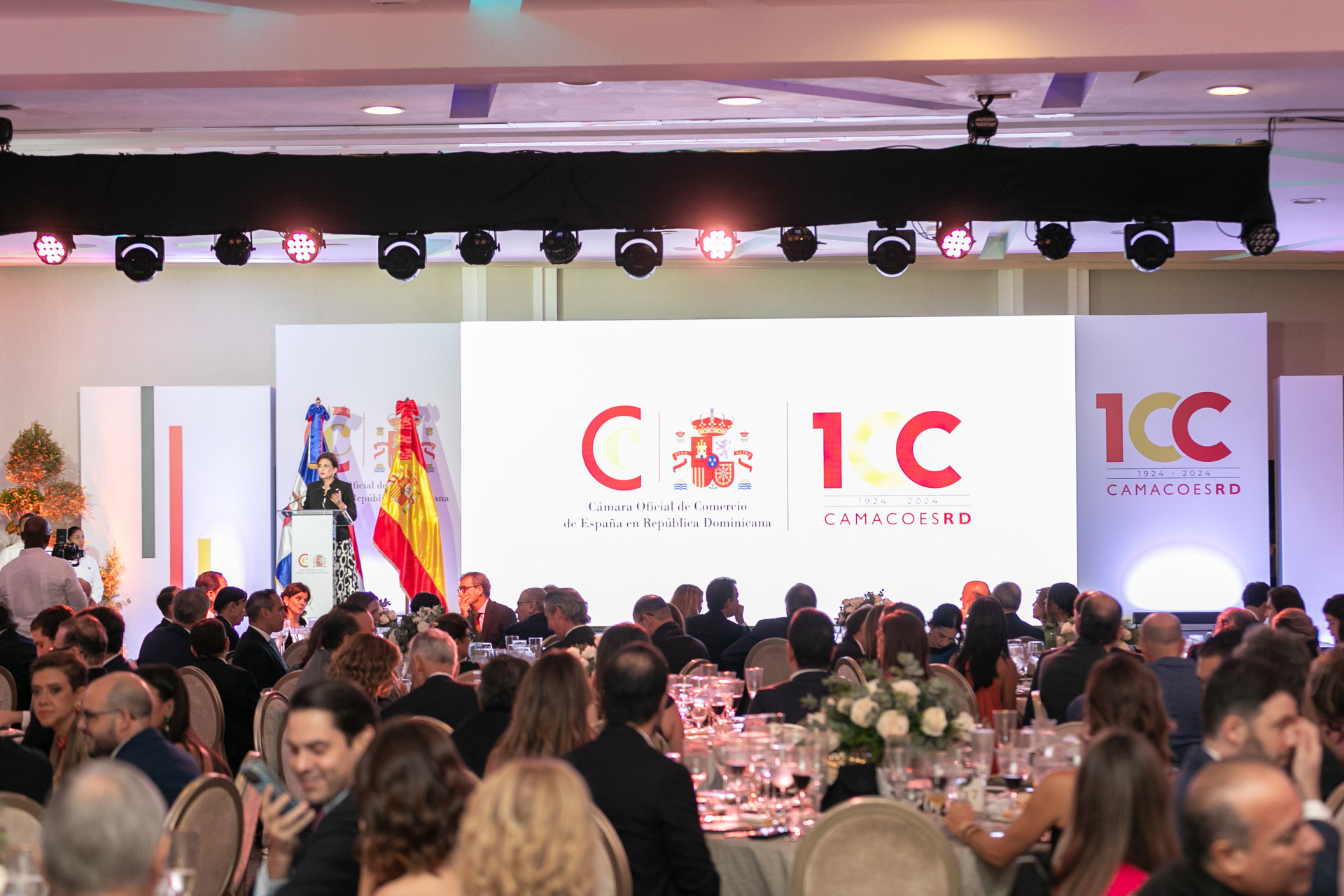 La vicepresidenta Raquel Peña participó en la celebración del centenario de la Cámara Oficial del Comercio de España en la República Dominicana. Durante el evento, se destacaron los resultados positivos de esta relación amistosa y comercial para ambas naciones en sectores como turismo, inversiones e infraestructura a lo largo de los últimos 100 años. Santo Domingo, República Dominicana, 21 de Noviembre 2024. Vp/ Pedro Rodriguez
