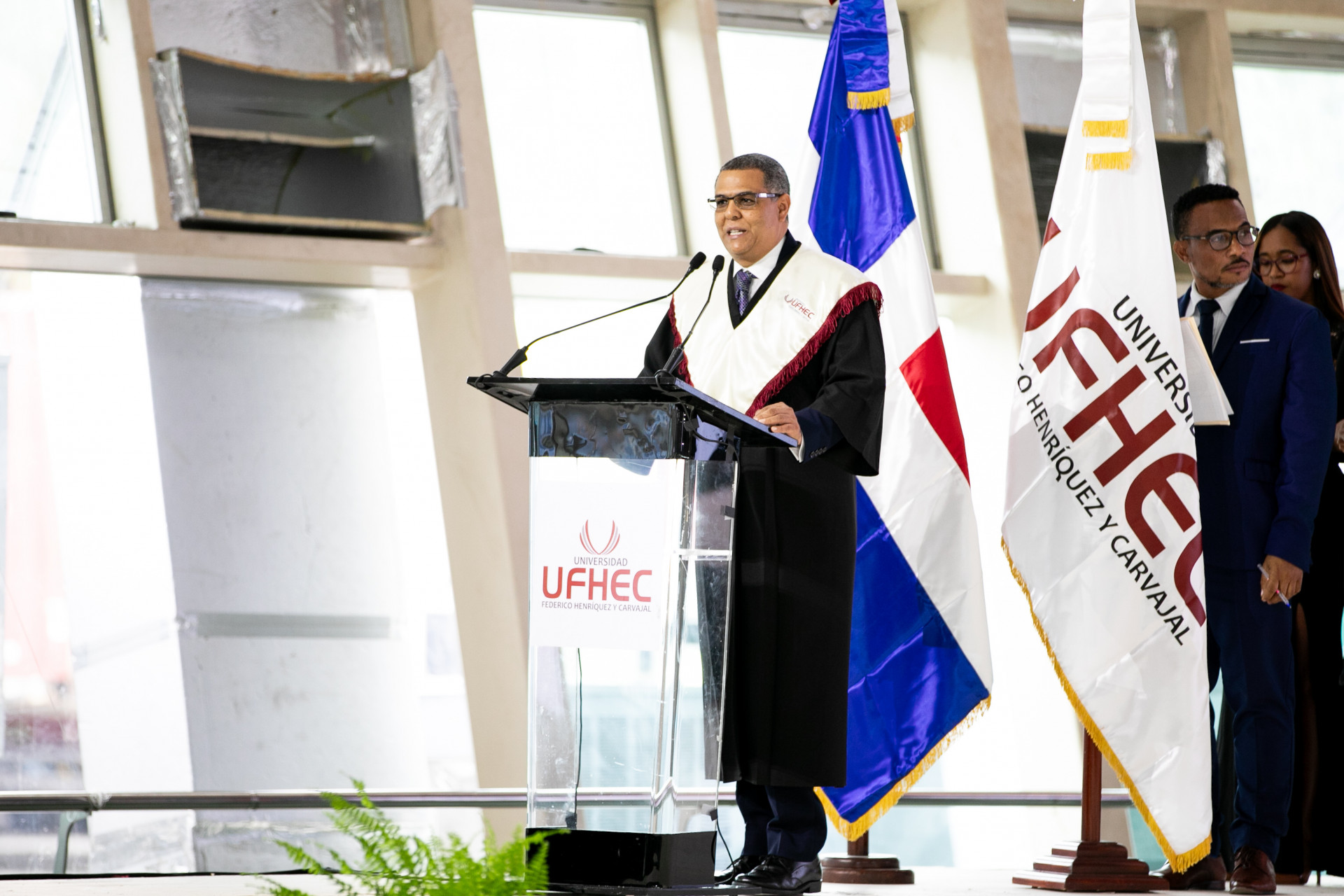Durante un acto encabezado por la vicepresidenta Raquel Peña, la Universidad UFHEC celebró su cuadragésima segunda investidura, graduando a jóvenes de distintas áreas. A partir de hoy, estos nuevos profesionales aportarán a la sociedad dominicana con sus habilidades y aspiraciones. Santo Domingo, República Dominicana. 28 de Noviembre del 2024. VP/ Sintia Méndez