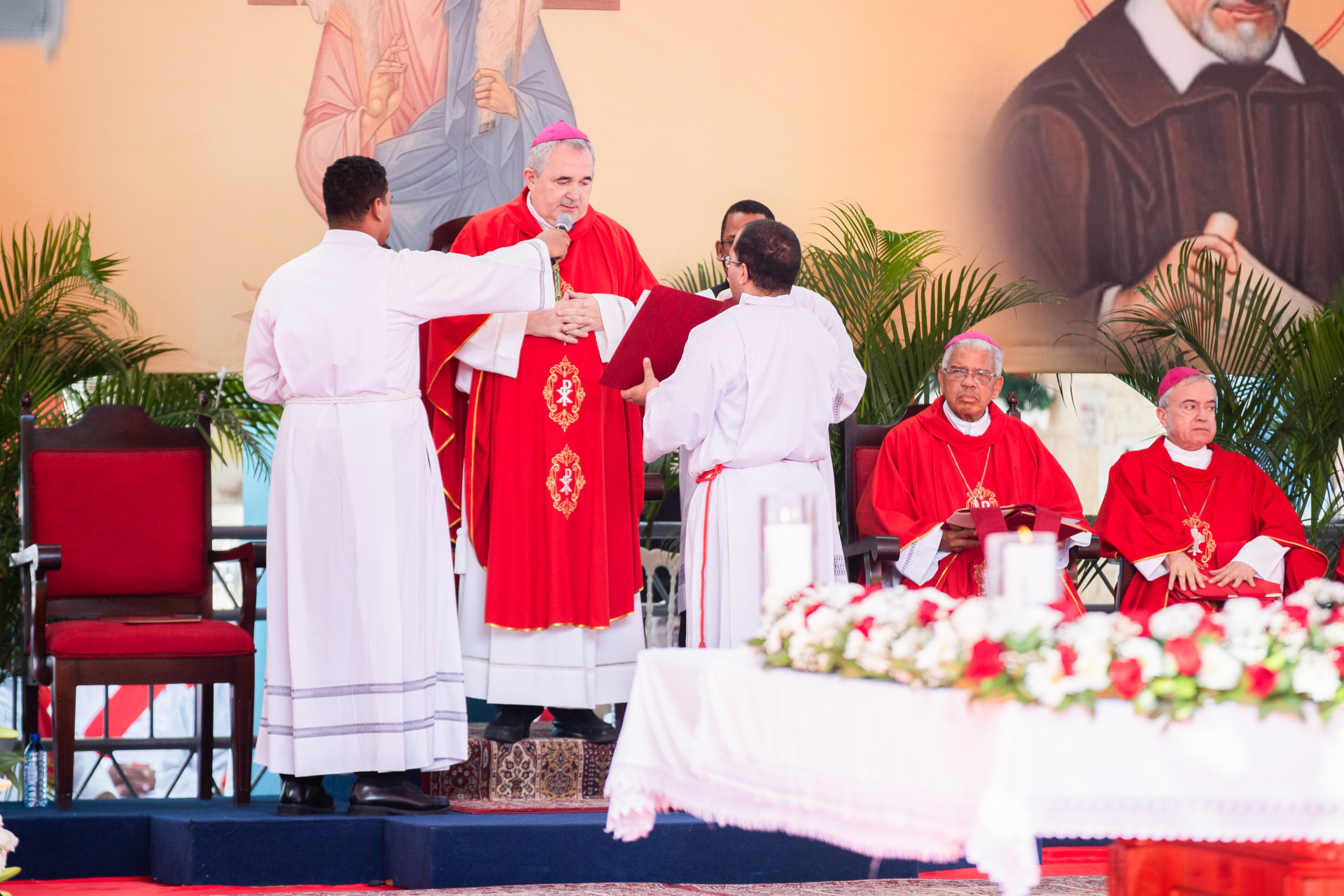 La vicepresidenta Raquel Peña asistió hoy a la toma de posesión de Su Excelencia Reverendísima Monseñor Faustino Burgos como obispo de Baní, quien desde hace décadas ha puesto su dedicación, compromiso y valores a favor del bienestar social y espiritual de la sociedad. ​Santo Domingo, República Dominicana, 30 de Noviembre 2024. Vp/Felix Hirujo