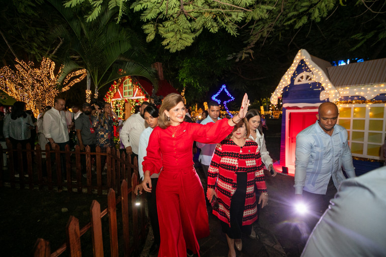 La vicepresidenta Raquel Peña inauguró la tercera edición de Villa Navidad en Santiago, un espacio lleno de luces y alegría para que las familias vivan momentos inolvidables en esta época especial. Santiago, República Dominicana. 01 de Diciembre del 2024. VP/ Sintia Méndez