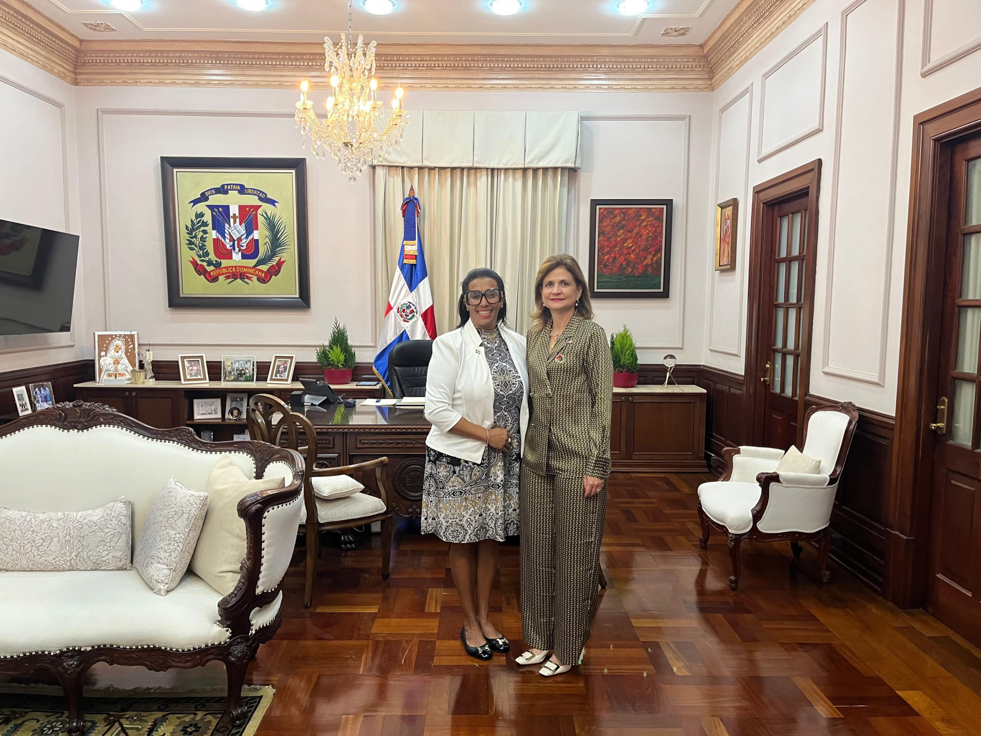 La Vicepresidenta Raquel Peña sostuvo un encuentro con la señora Julissa Hernández, vicecónsul del Consulado Dominicano en Nueva York. Durante la reunión, dialogaron sobre el diseño de proyectos en favor de la mujer, como parte de los esfuerzos por fortalecer las iniciativas impulsadas desde esta oficina consular. Santo Domingo, República Dominicana, 10 de Diciembre 2024. Vp/ Fuente Externa