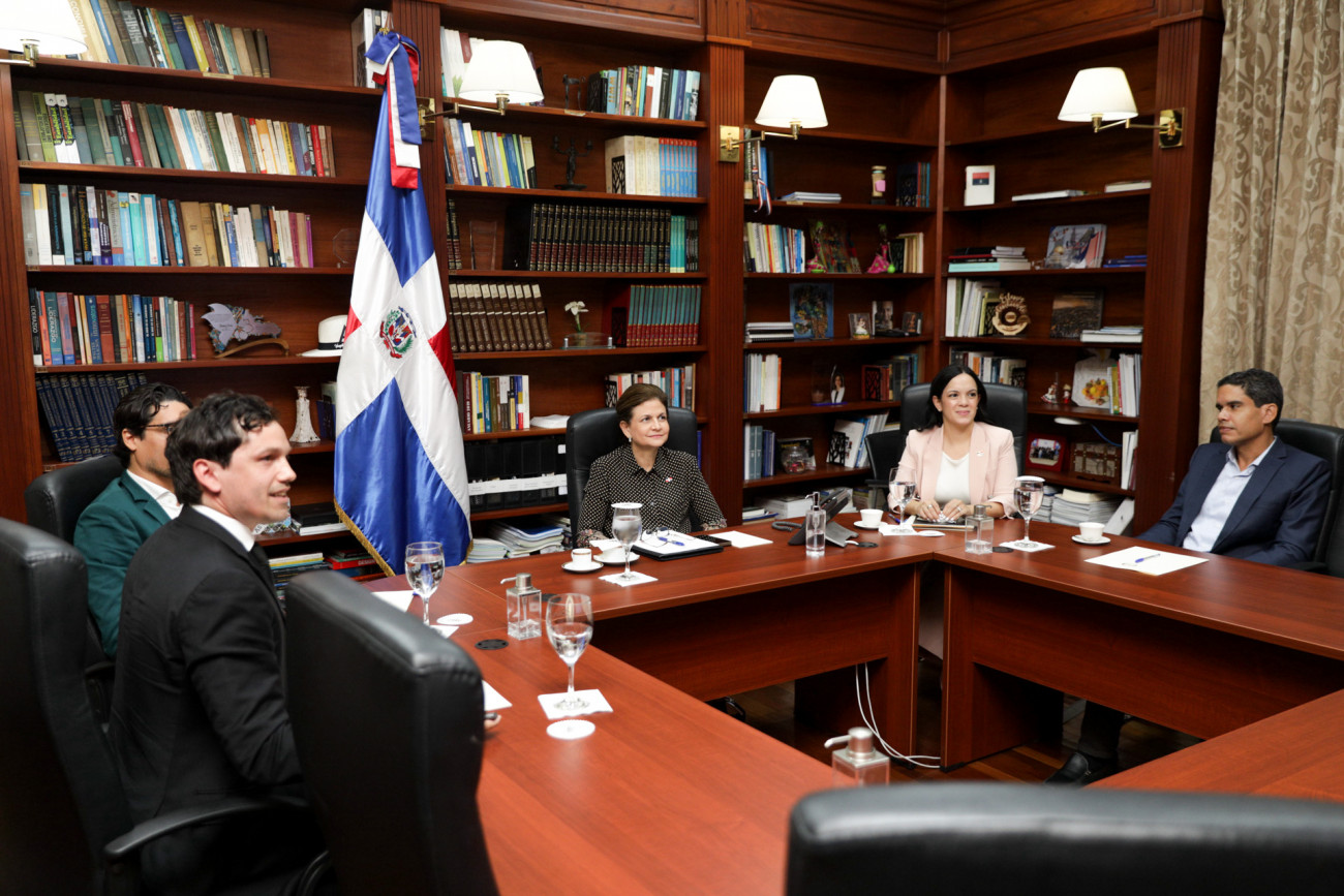 La vicepresidenta Raquel Peña recibió en su despacho a los jóvenes Sebastián y Rosángela Romero, egresados del Instituto Especializado de Estudios Superiores Loyola (IEESL). Sebastián recientemente se convirtió, con solo 19 años, en el egresado más joven en la historia de este centro de estudios. Durante su reunión, conversaron sobre la importancia de promover una educación de calidad en el país como clave para el desarrollo de la juventud dominicana. Santo Domingo, República Dominicana. 16 de Diciembre del 2024. VP/ Sintia Méndez
