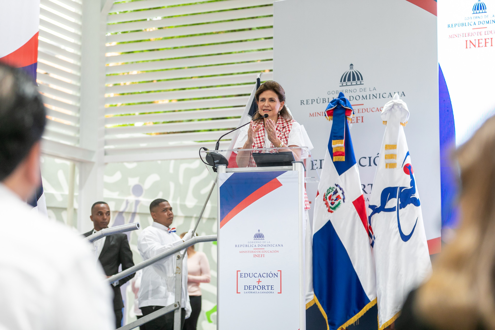La vicepresidenta Raquel Peña inauguró el techado de la Escuela Primaria José Francisco Peña Gómez, en Pueblo Nuevo, Santiago. Santo Domingo, República Dominicana, 23 de Diciembre 2024. Vp/ Pedro Rodriguez
