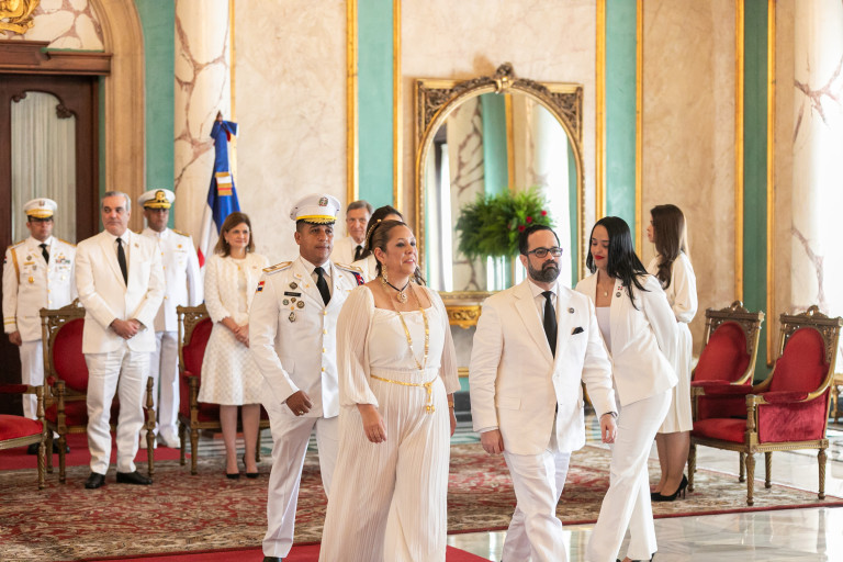 El presidente Luis Abinader y la vicepresidenta Raquel Peña, en compañía del ministro Roberto Álvarez, asistieron al acto de presentación de las cartas credenciales de embajadoras y embajadores que ingresan a realizar sus labores en la República Dominicana. Santo Domingo, República Dominicana, 19 de Diciembre 2024. Vp/ Pedro Rodriguez