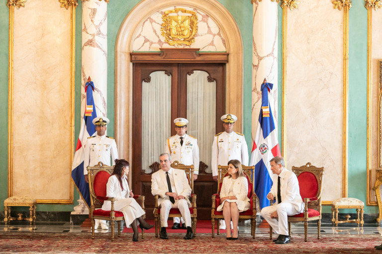 El presidente Luis Abinader y la vicepresidenta Raquel Peña, en compañía del ministro Roberto Álvarez, asistieron al acto de presentación de las cartas credenciales de embajadoras y embajadores que ingresan a realizar sus labores en la República Dominicana. Santo Domingo, República Dominicana, 19 de Diciembre 2024. Vp/ Pedro Rodriguez