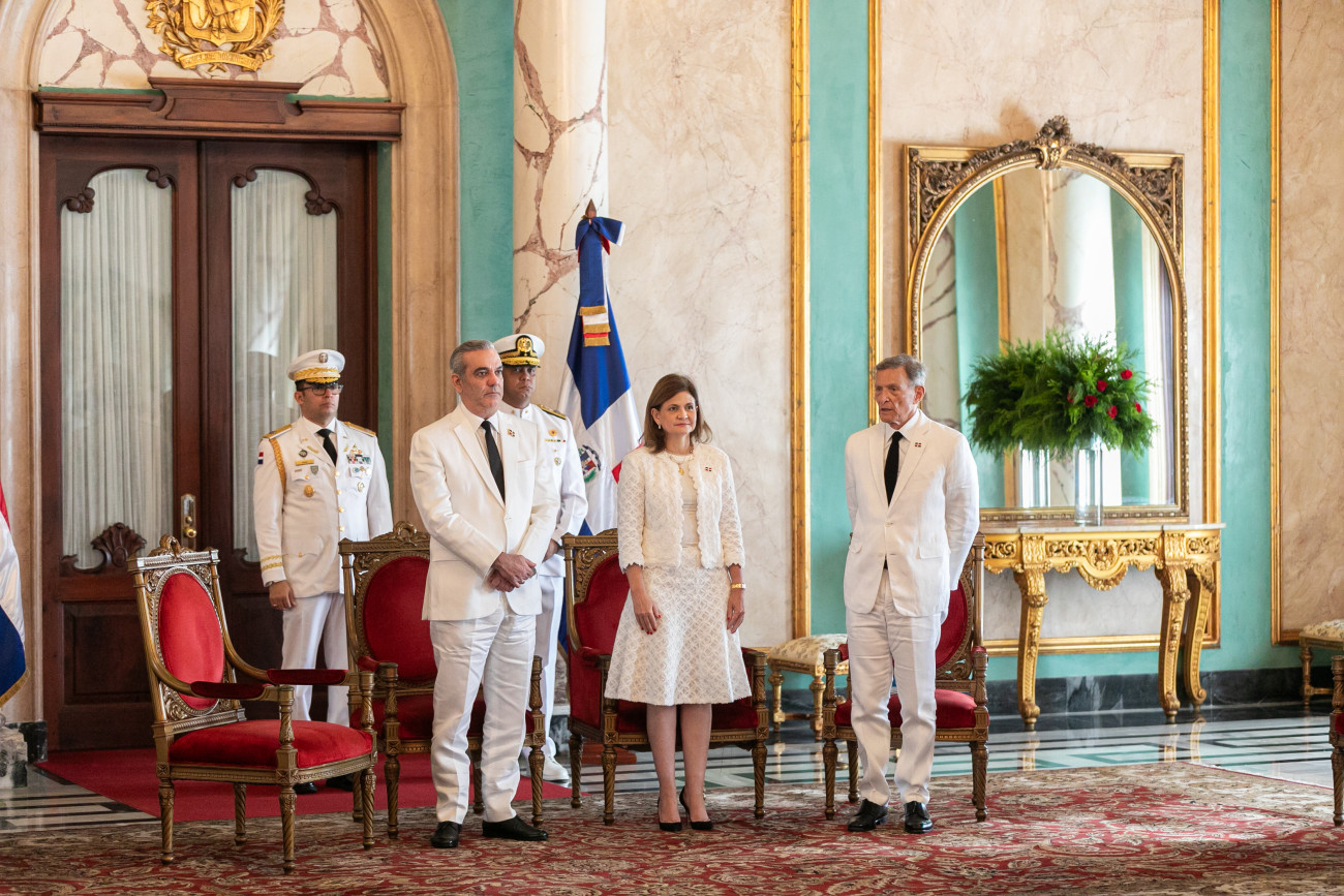 El presidente Luis Abinader y la vicepresidenta Raquel Peña, en compañía del ministro Roberto Álvarez, asistieron al acto de presentación de las cartas credenciales de embajadoras y embajadores que ingresan a realizar sus labores en la República Dominicana. Santo Domingo, República Dominicana, 19 de Diciembre 2024. Vp/ Pedro Rodriguez